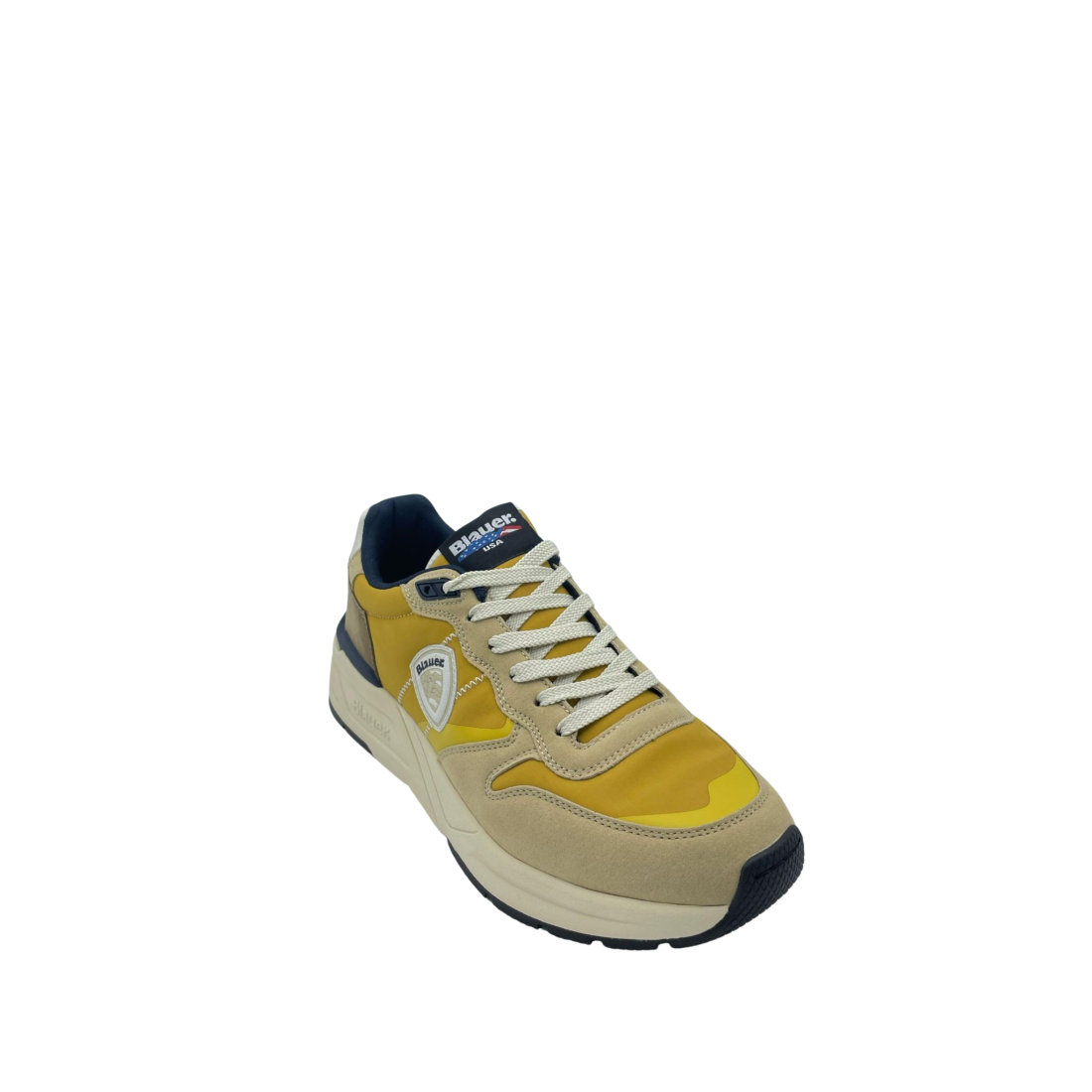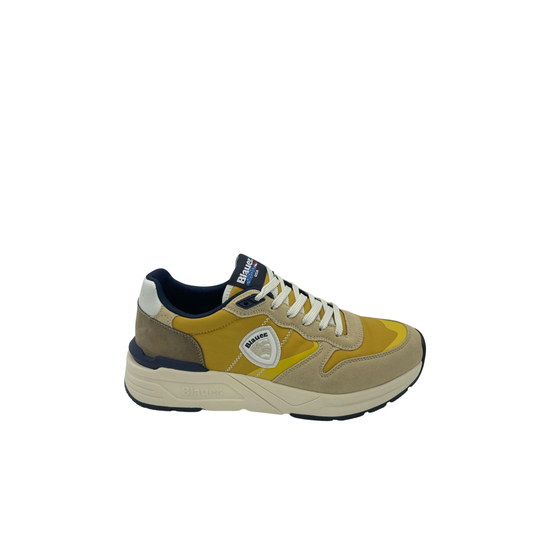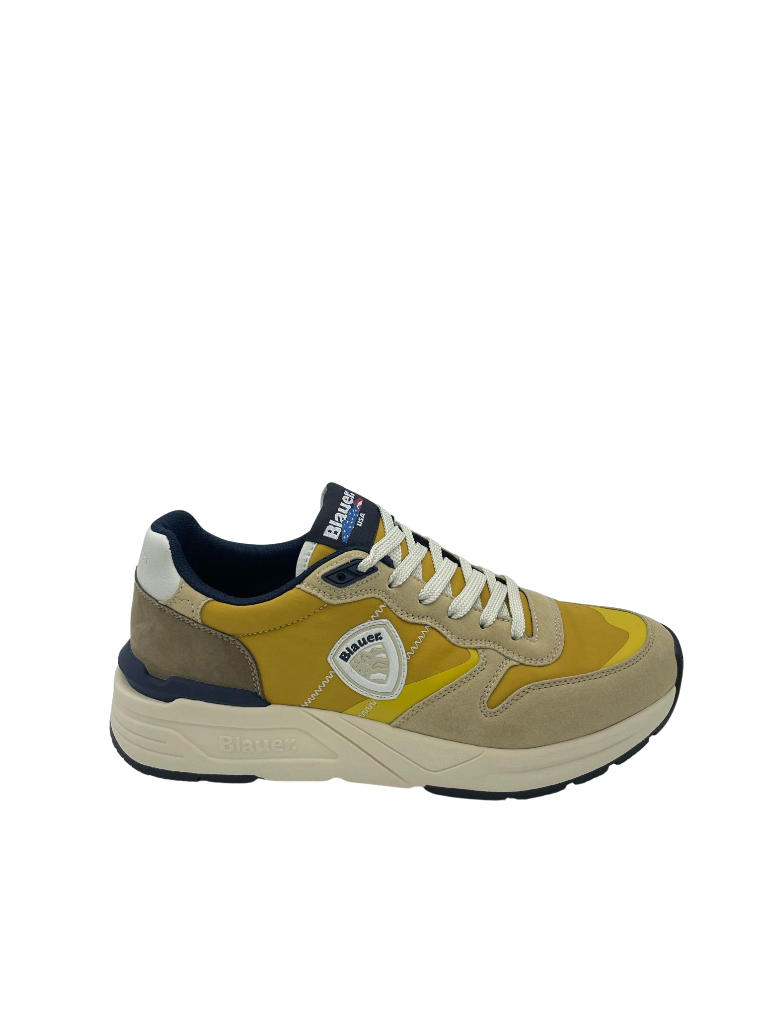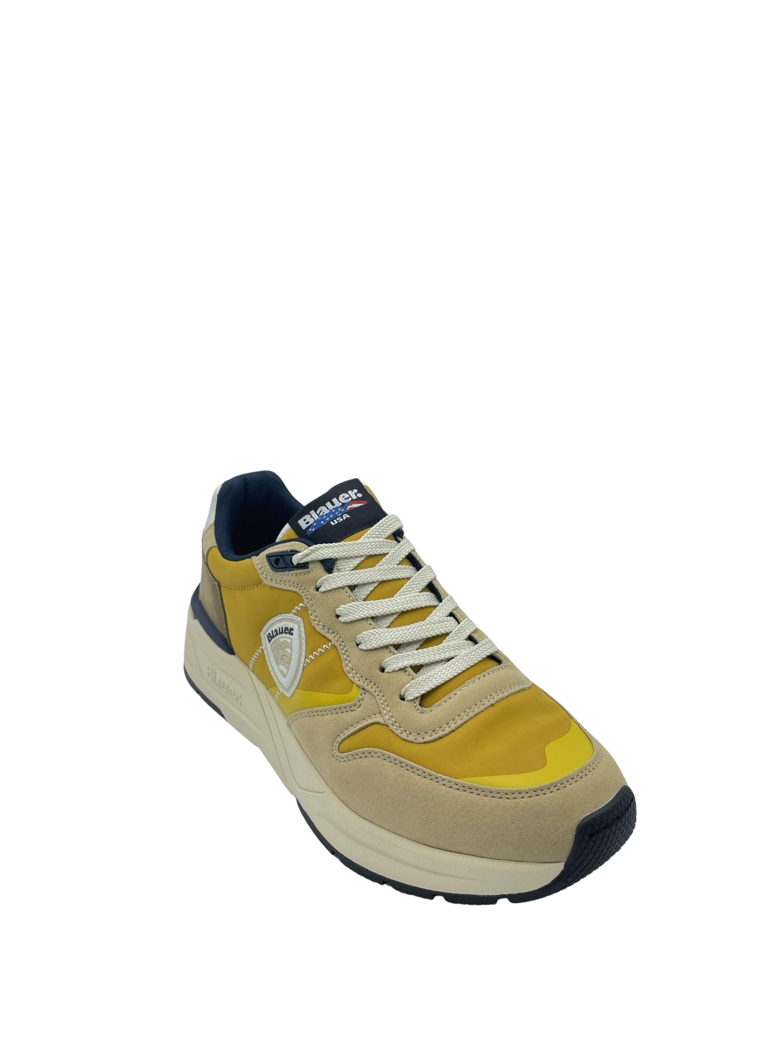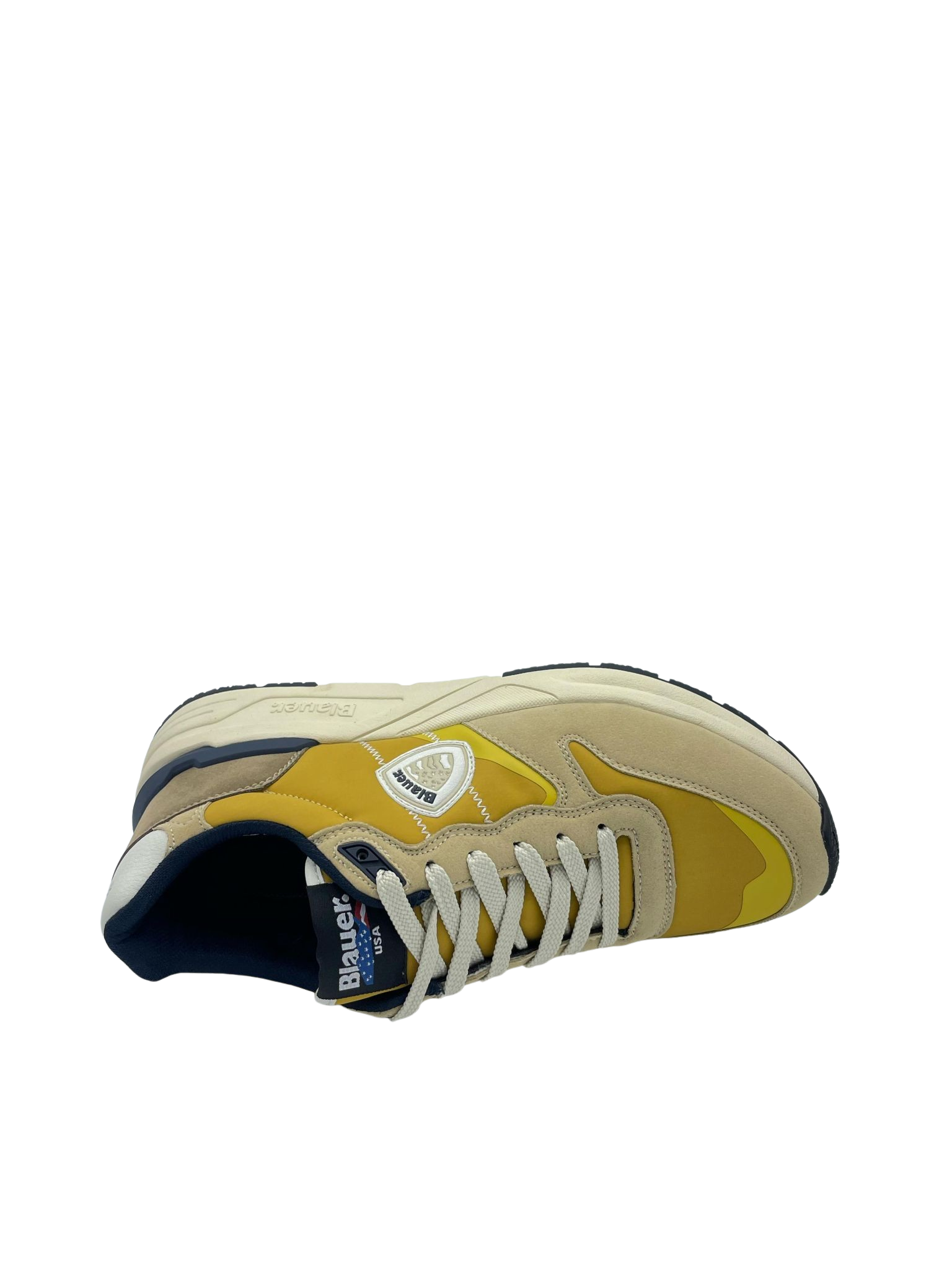 Sneaker con tomaia in vera pelle suede e tessuto. Sottopiede in tessuto e Logo in evidenza sulla parte laterale. Intersuola ammortizzata e fondo in gomma.
