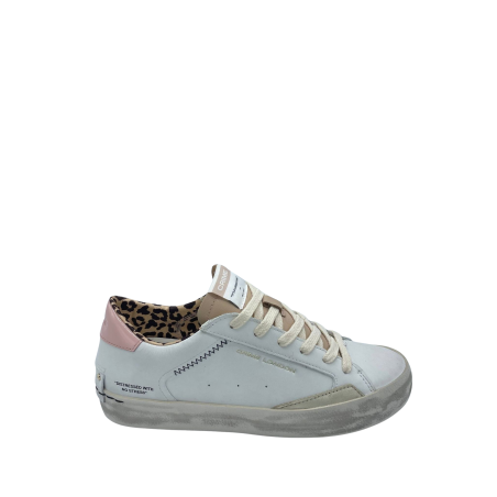 Sneaker con tomaia in vera pelle e sottopiede in tessuto. Dettaglio interno animalier e chiusura con lacci. Fondo in gomma. Made in Italy.