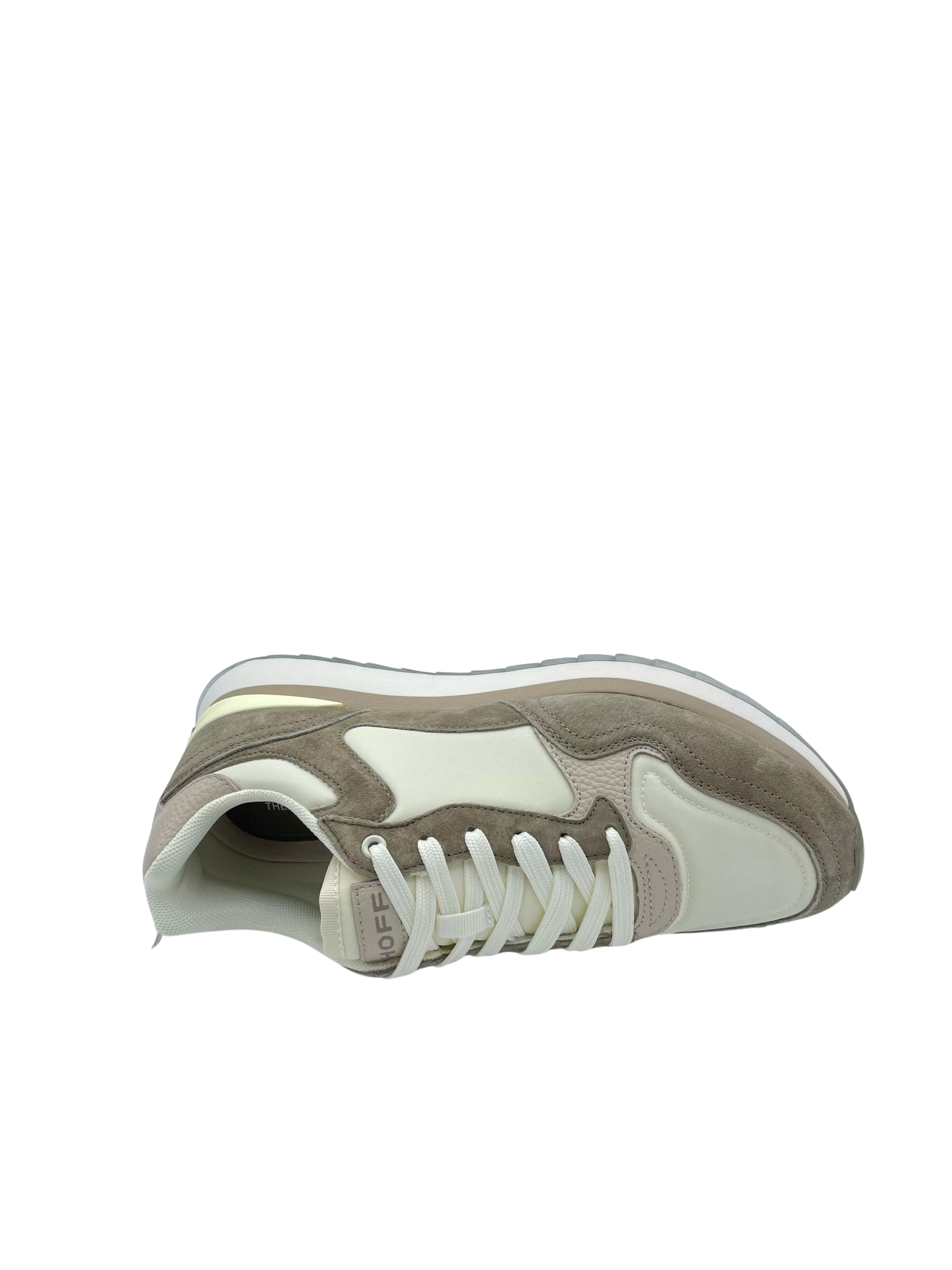Sneaker con tomaia in vera pelle suede e tessuto, soletta in Memory Foam. Fondo in schiuma EVA e gomma.