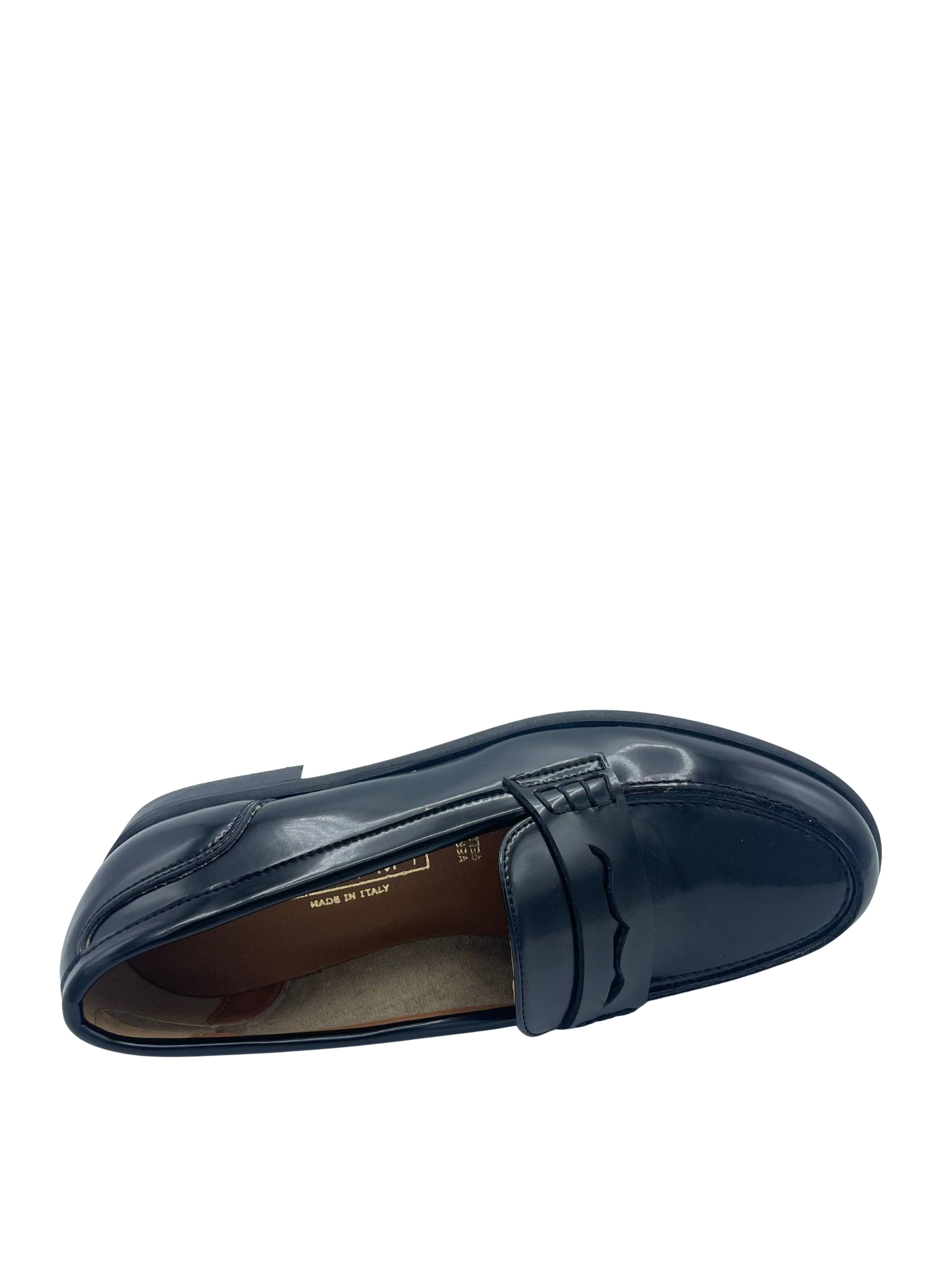 Mocassino college con tomaia in ecopelle e sottopiede in vera pelle. tacco alto 2 cm. Fondo in gomma. Made in Italy e lavorazione artigianale.