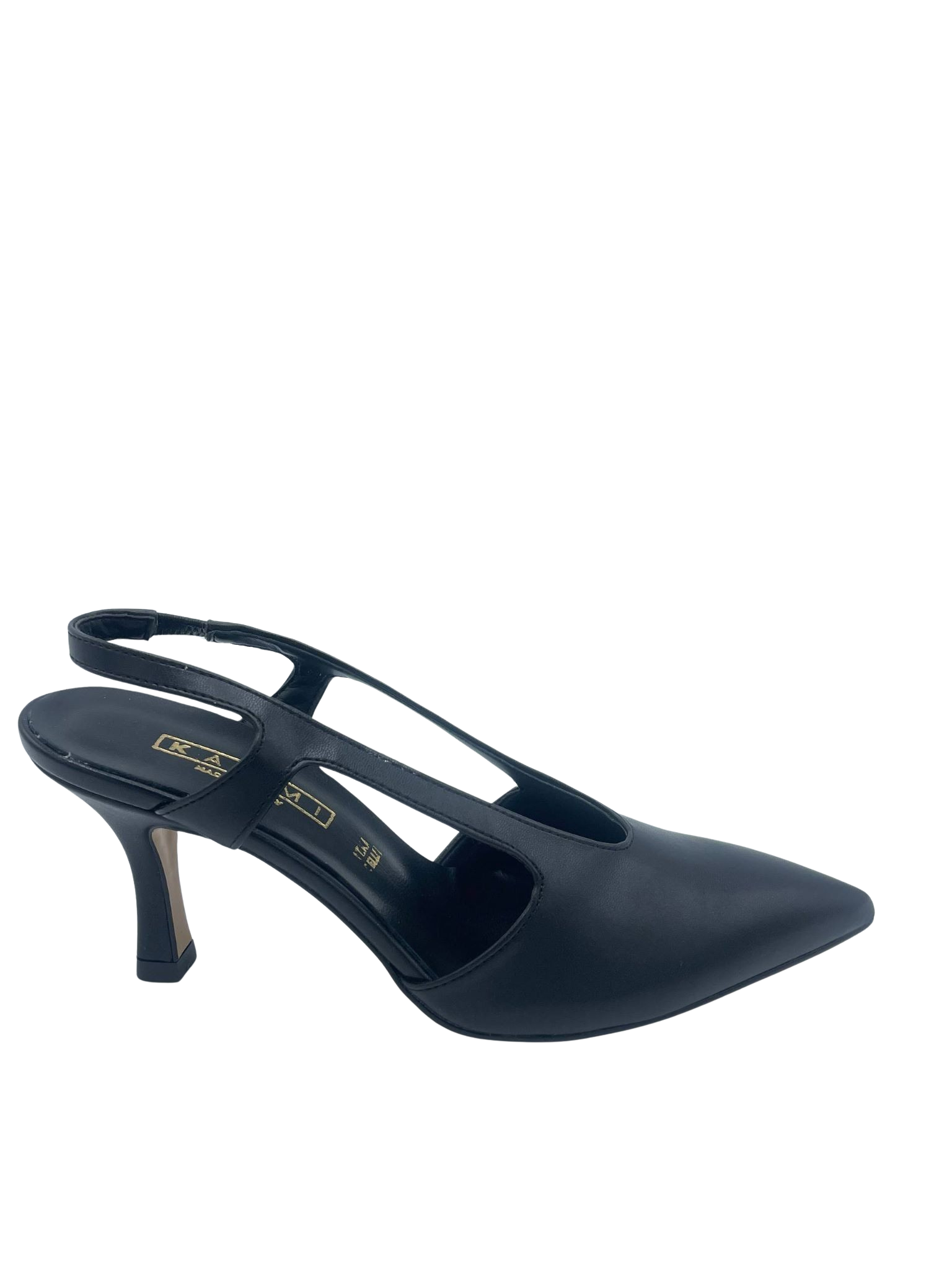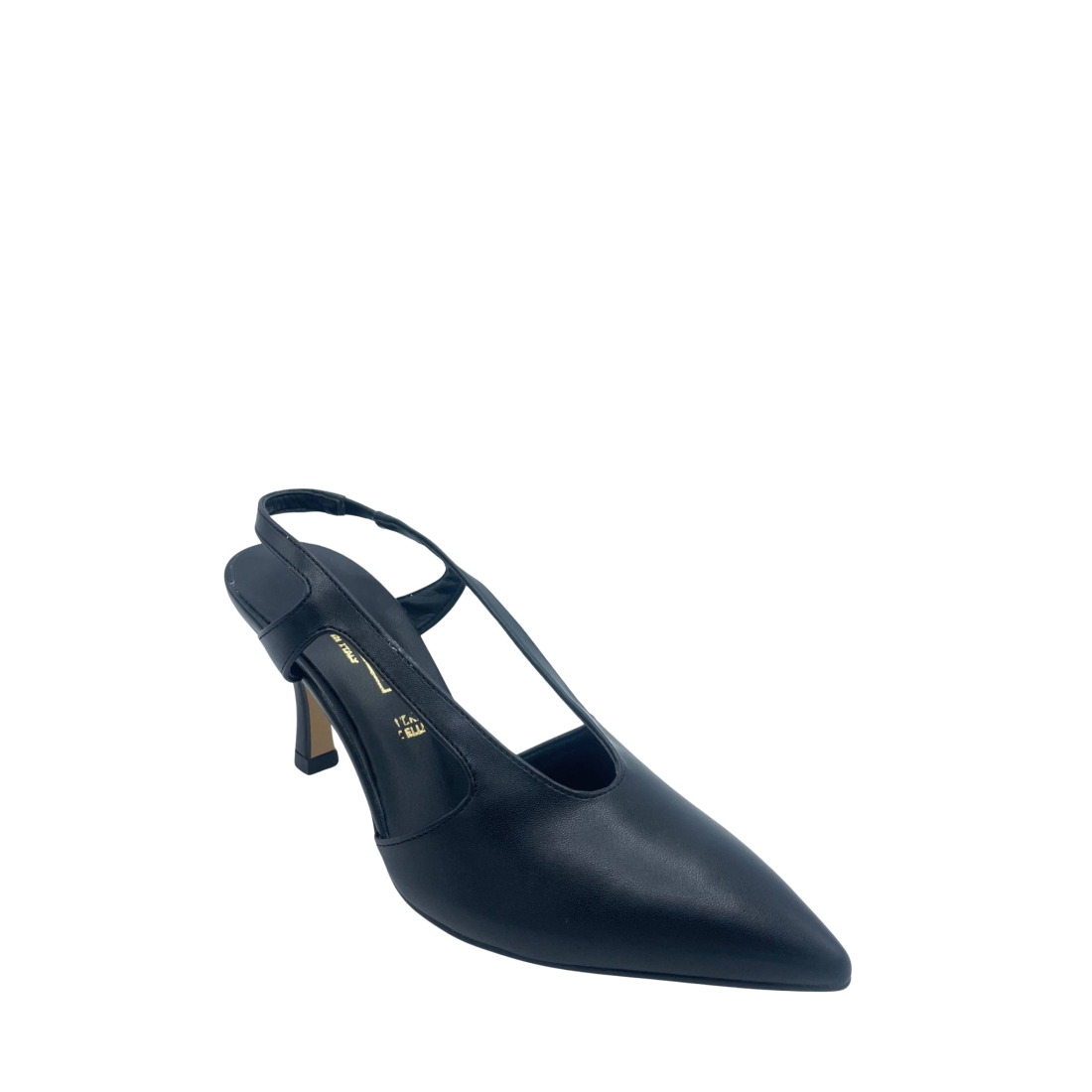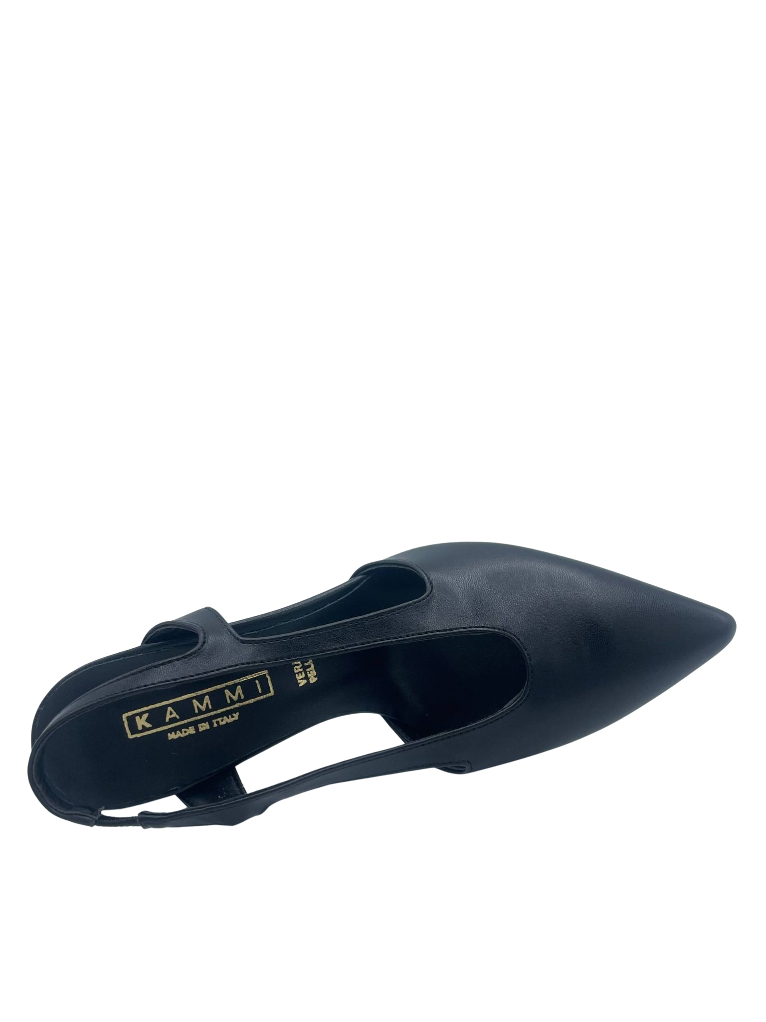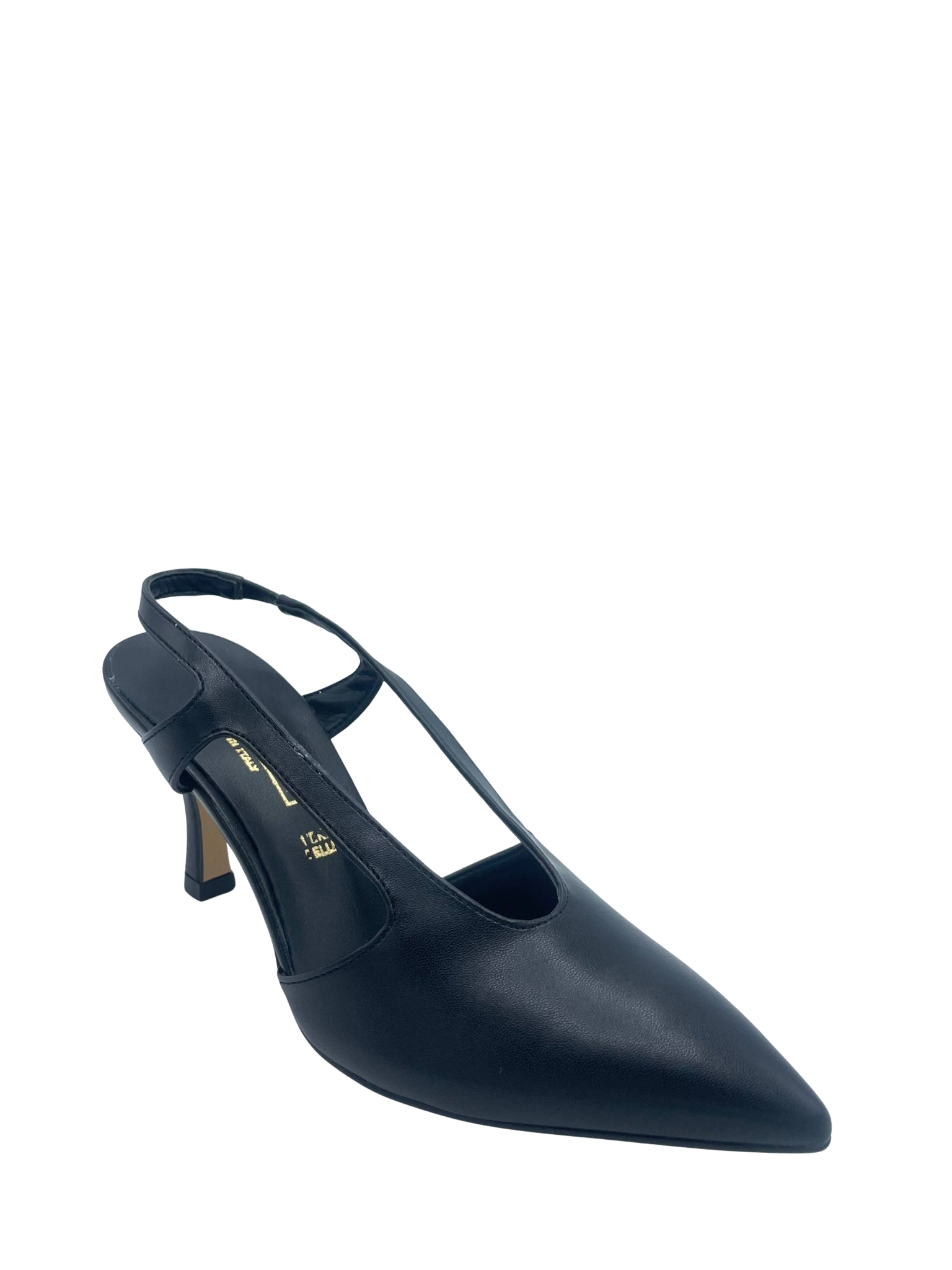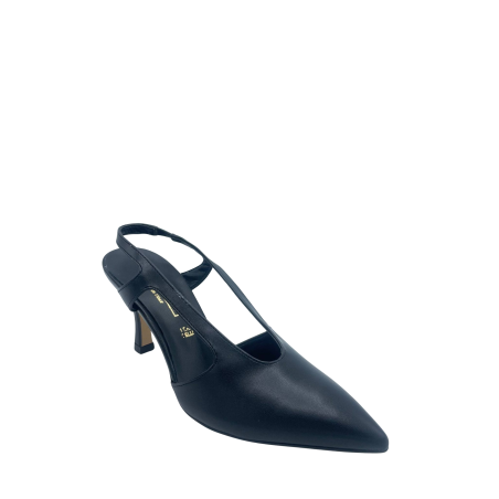 Slingback con scollatura ovale con tomaia in ecopelle e cinturino elastico. Sottopiede in vera pelle e tacco alto 7 cm. Fondo in tunit. Made in Italy e lavorazione artigianale.