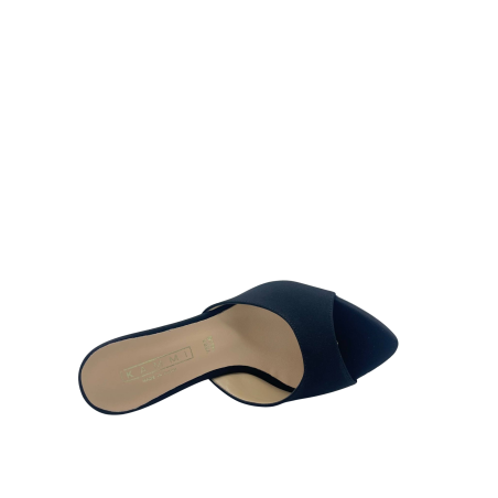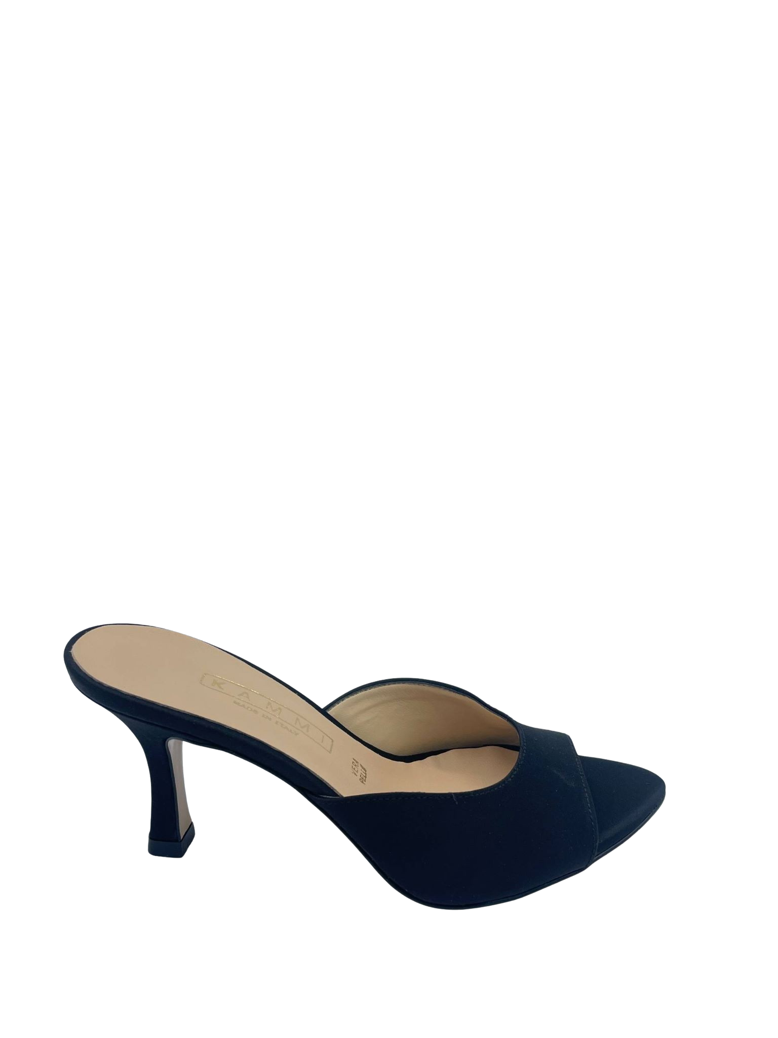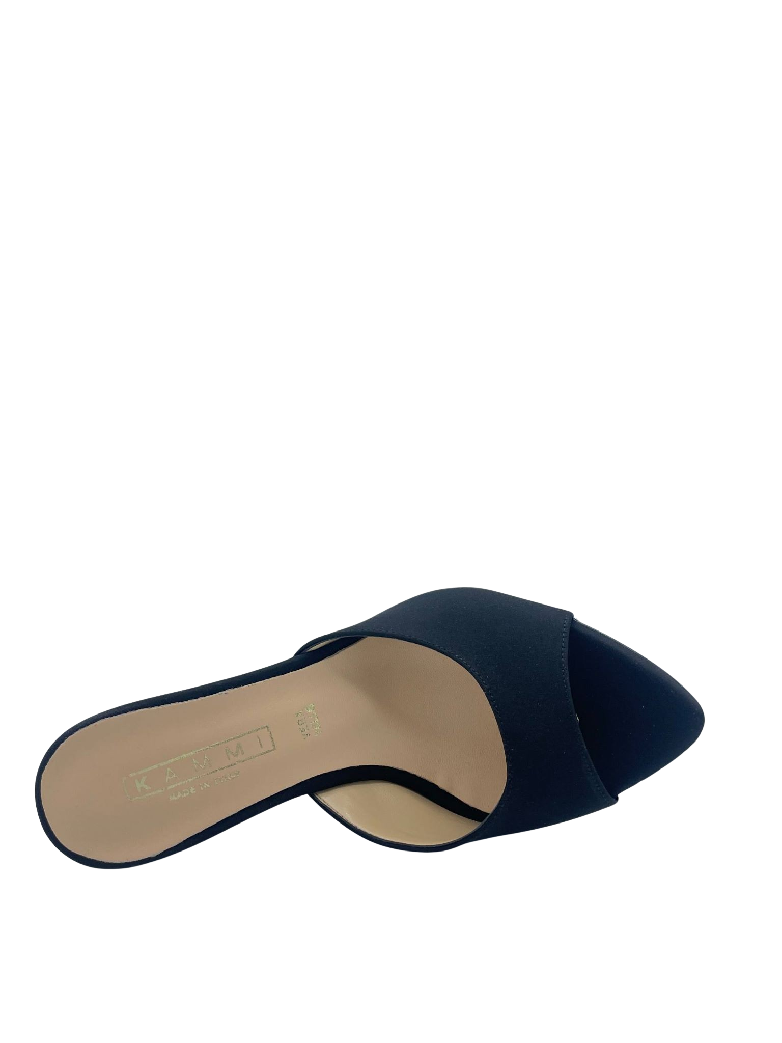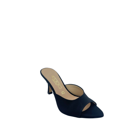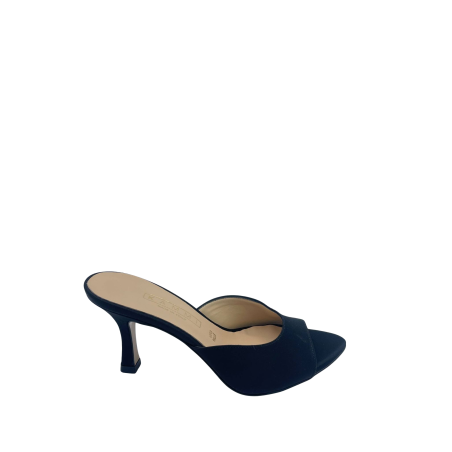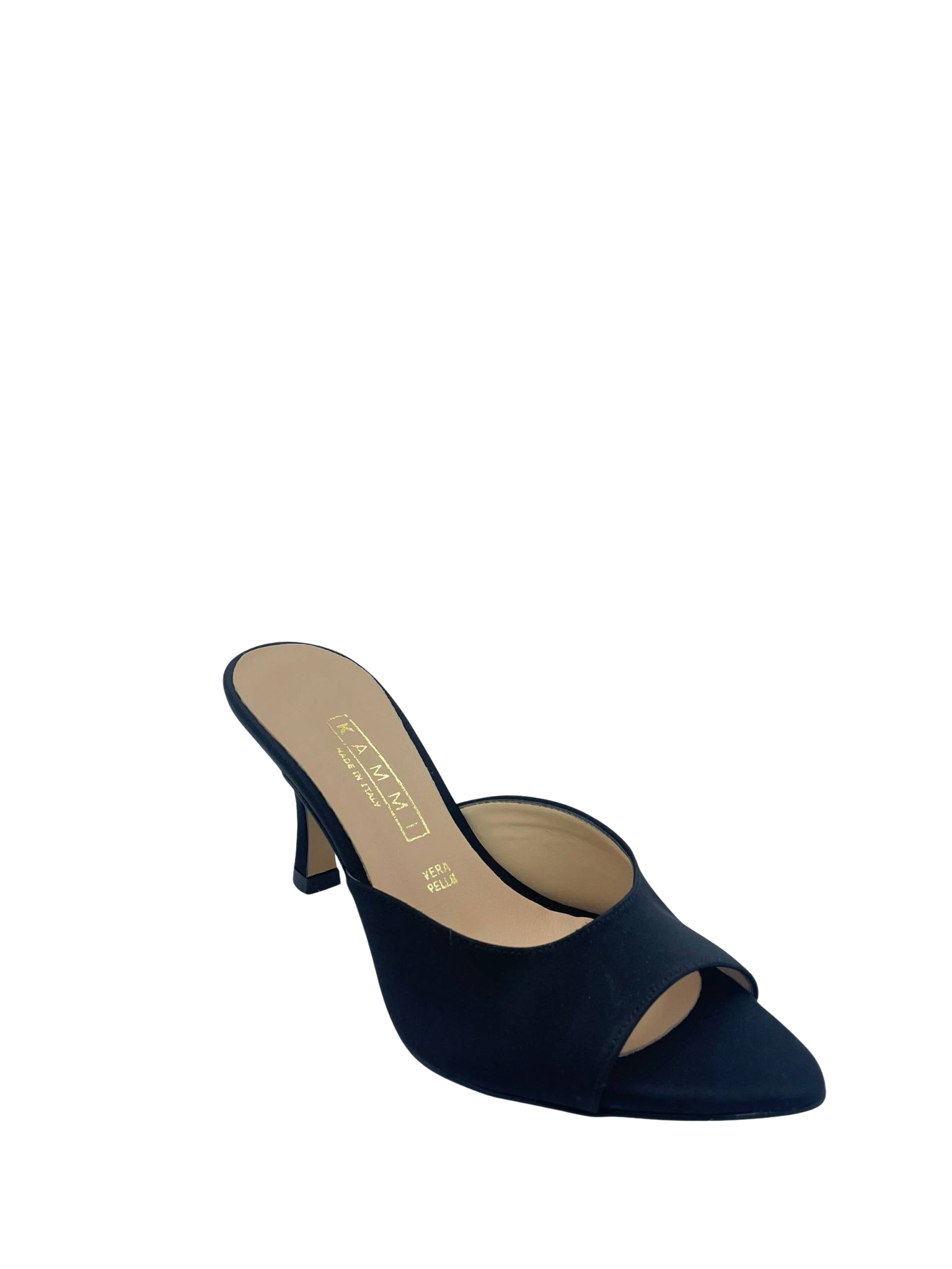Sandalo con tomaia in raso e sottopiede in vera pelle. Forma a punta e tacco alto 6 cm. Fondo in tunit. Made in Italy e lavorazione artigianale.