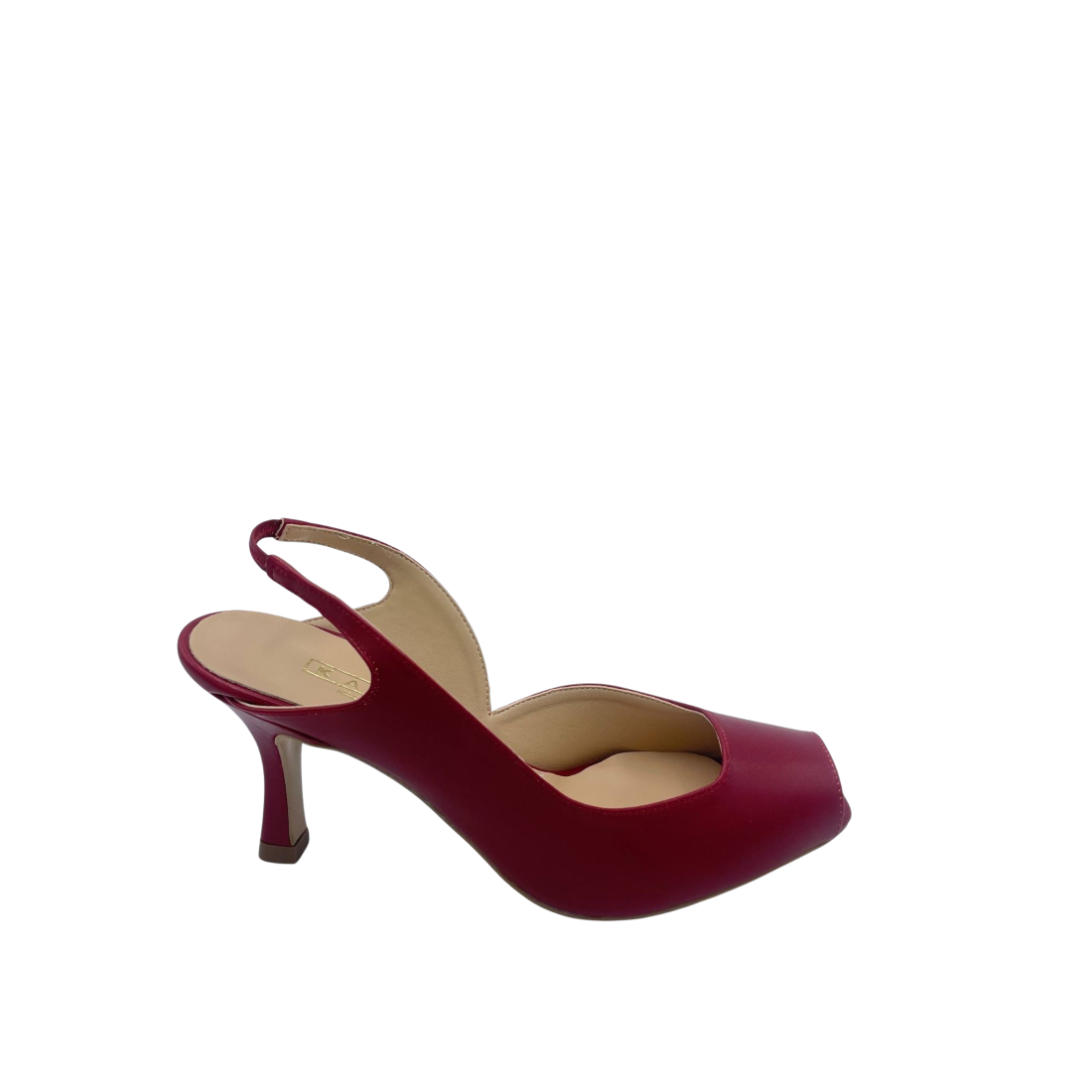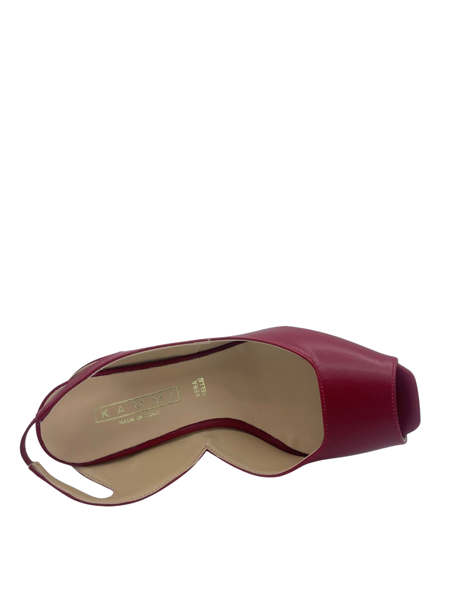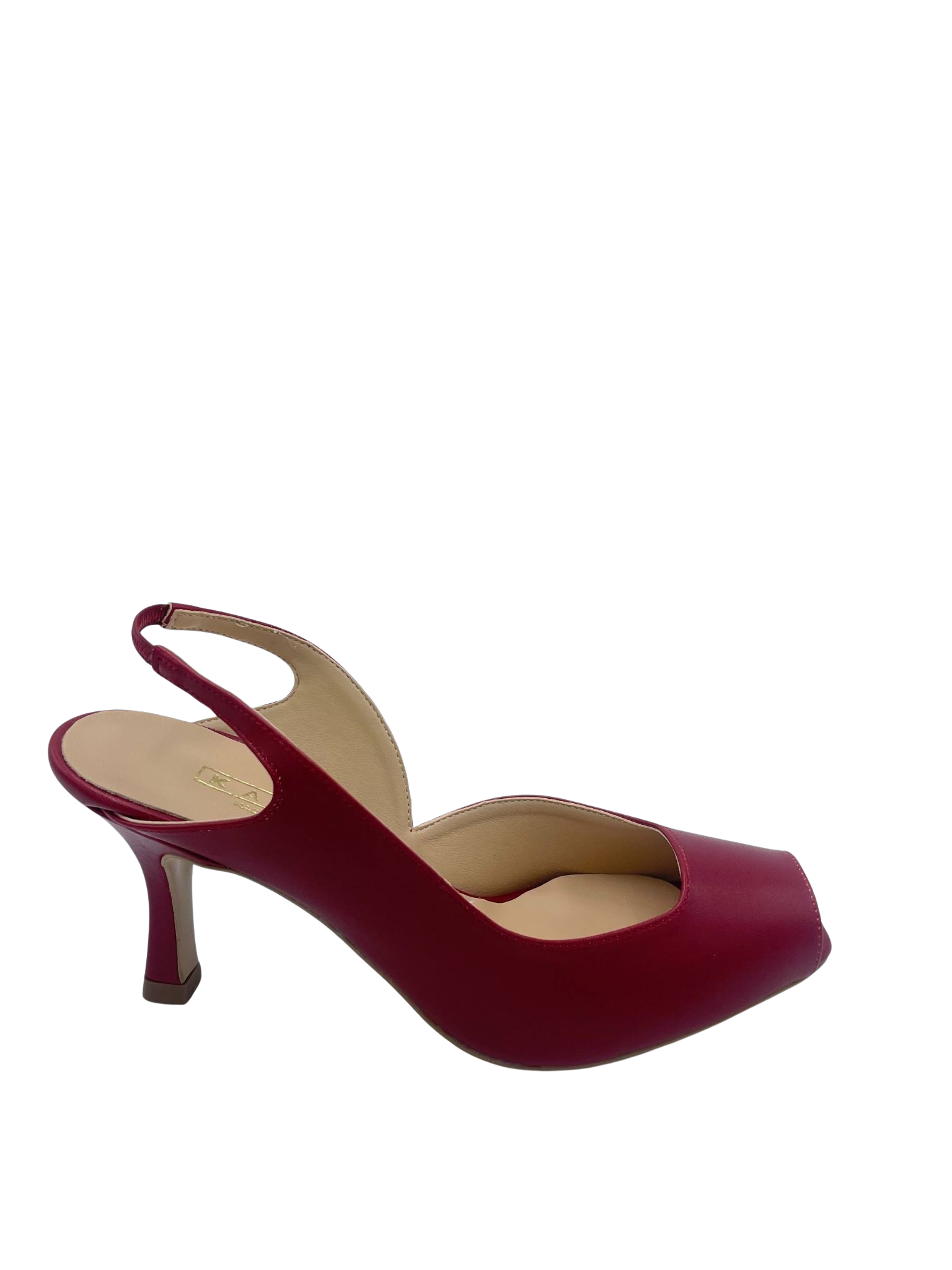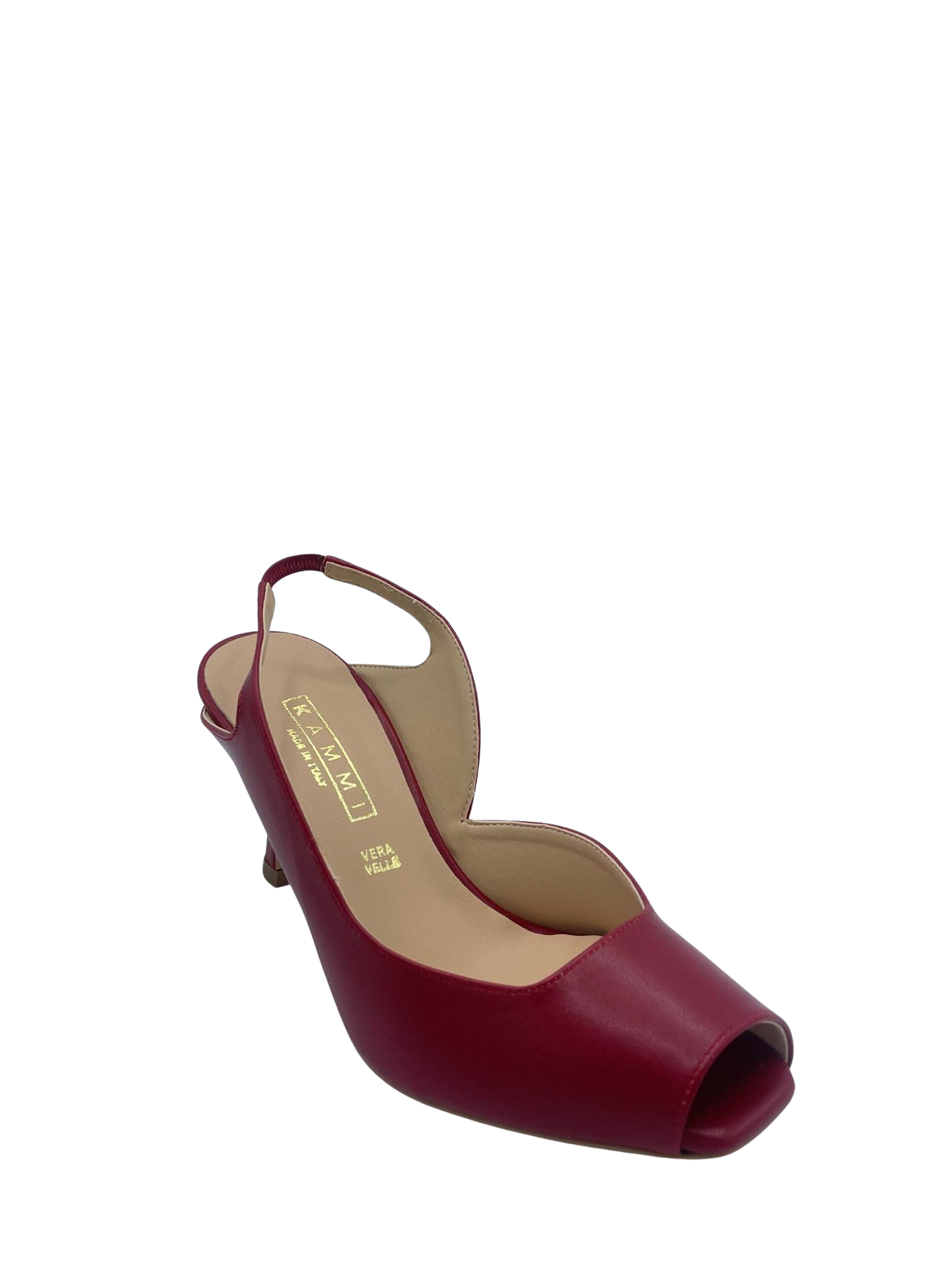 Slingback spuntata con tomaia in ecoepelle e cinturino elastico. Tacco alto 6.5 cm. Sottopiede in vera pelle e fondo in tunit. Made in Italy e lavorazione artigianale.