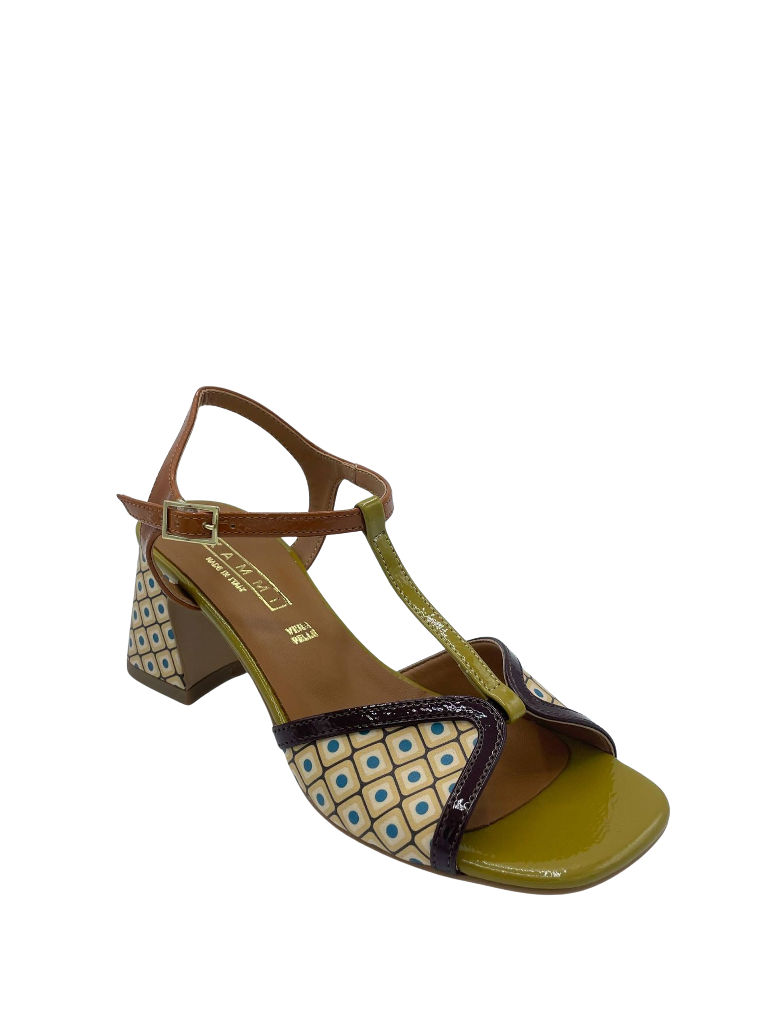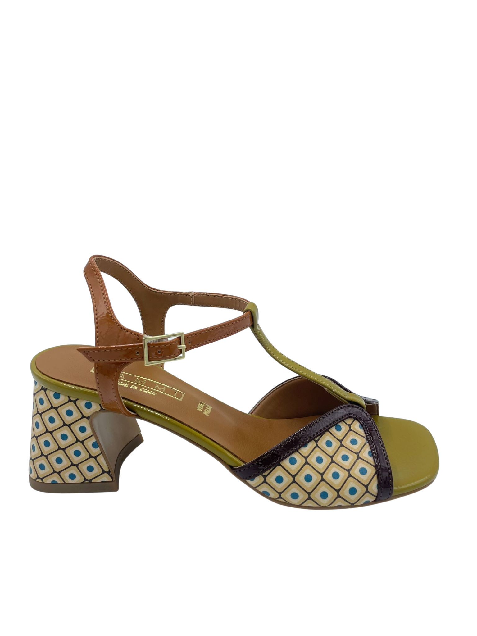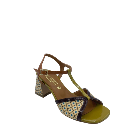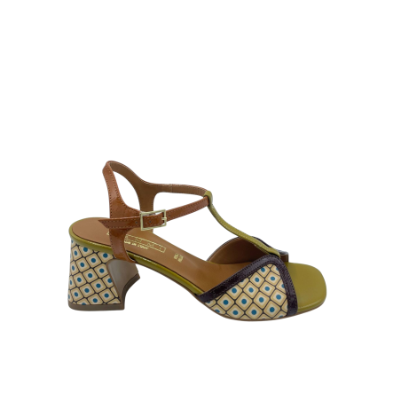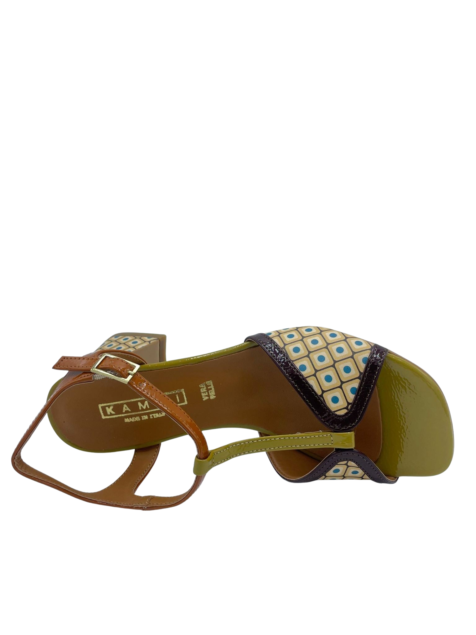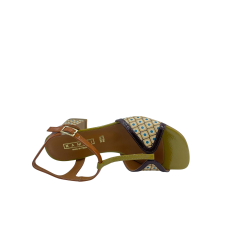 Sandalo con tomaia in ecopelle ,con tacco largo alto 6 cm. Sottopiede in vera pelle, punta squadrata e cinturino regolabile alla caviglia. Fondo in tunit. Made in Italy e lavorazione artigianale.