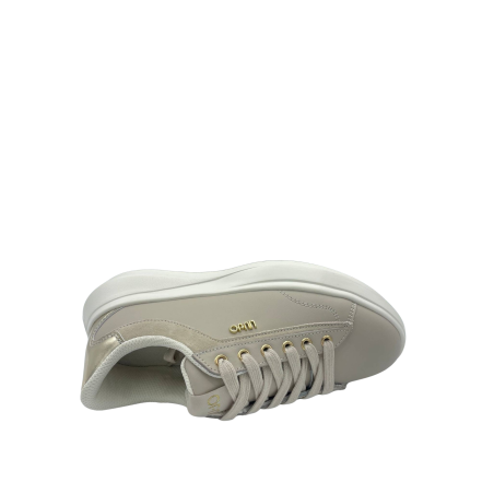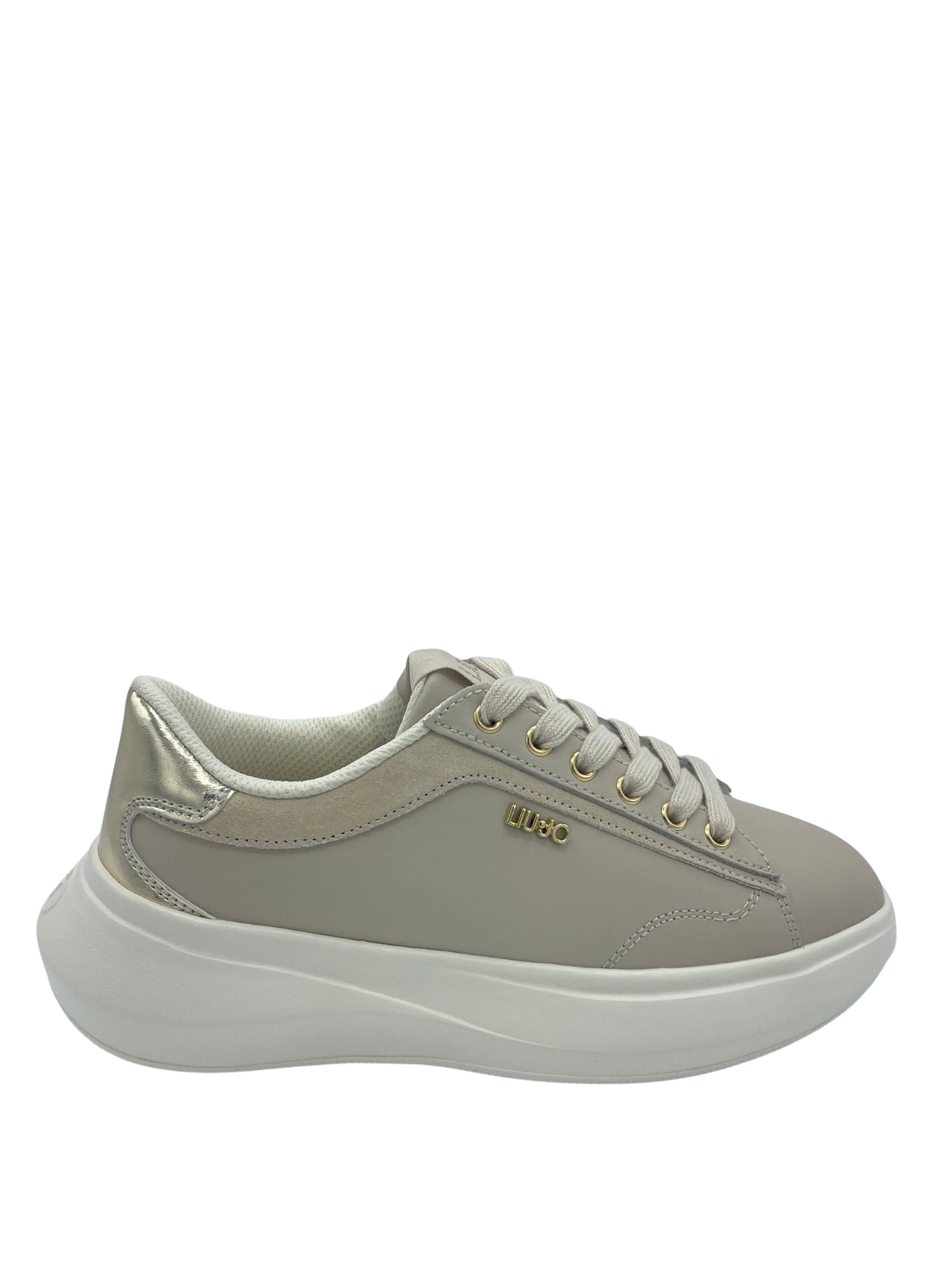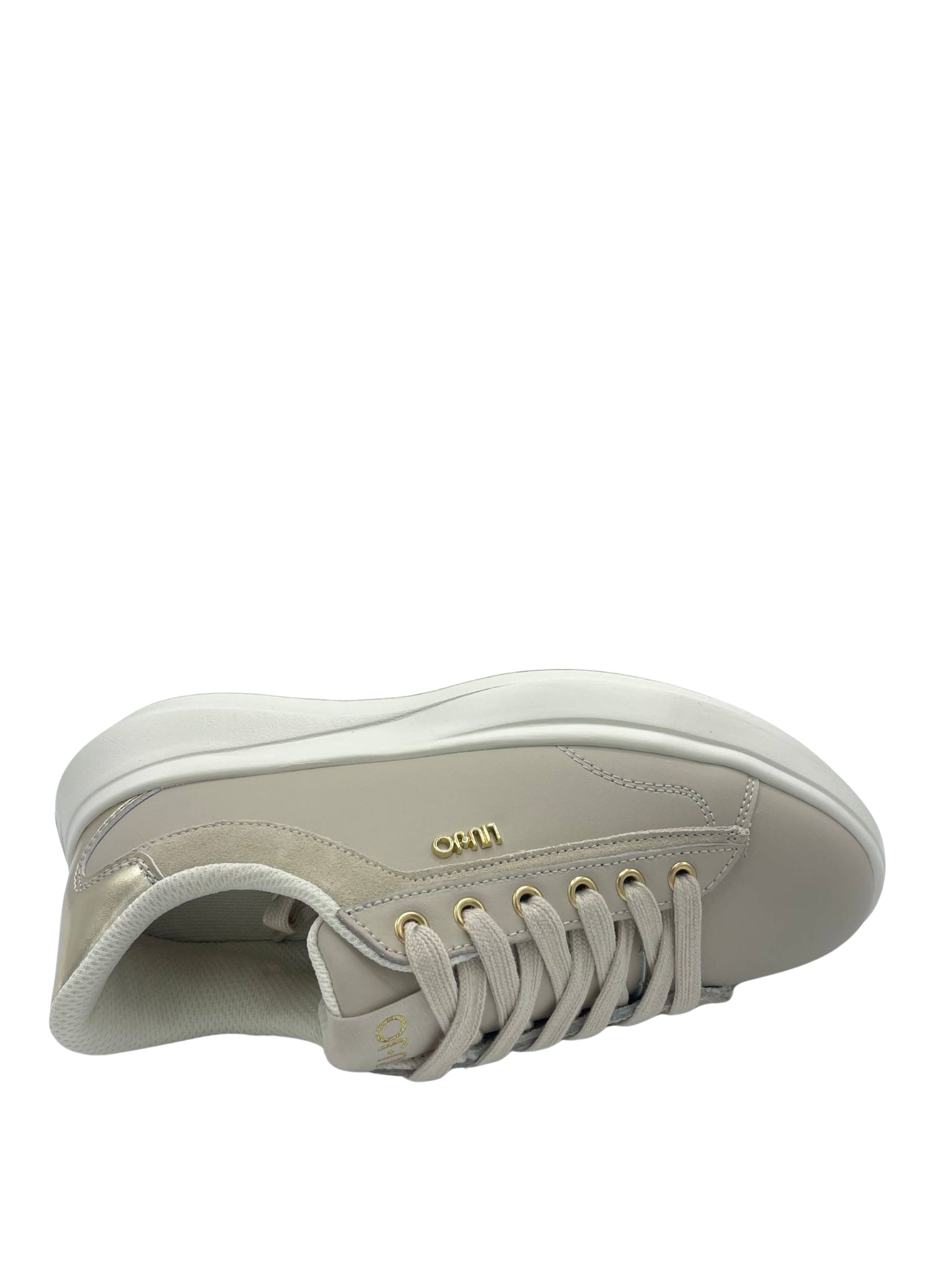 Sneaker con tomaia in vera pelle e sottopiede in tessuto. Logo laterale color oro. Chiusura con lacci. Fondo in gomma.