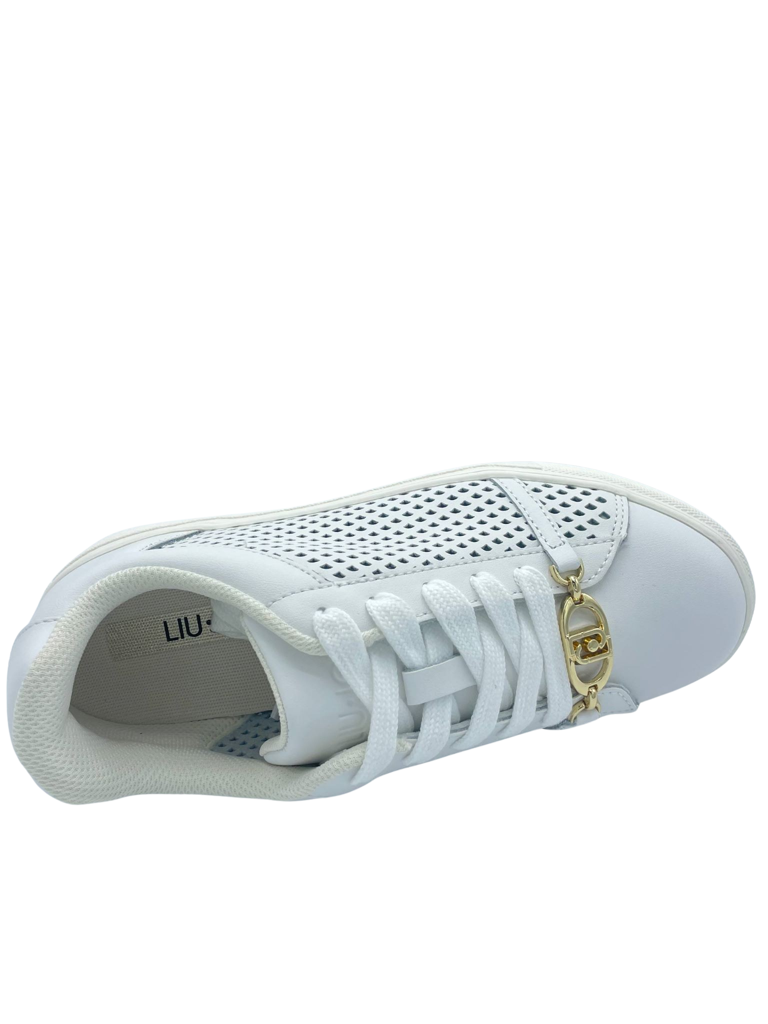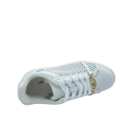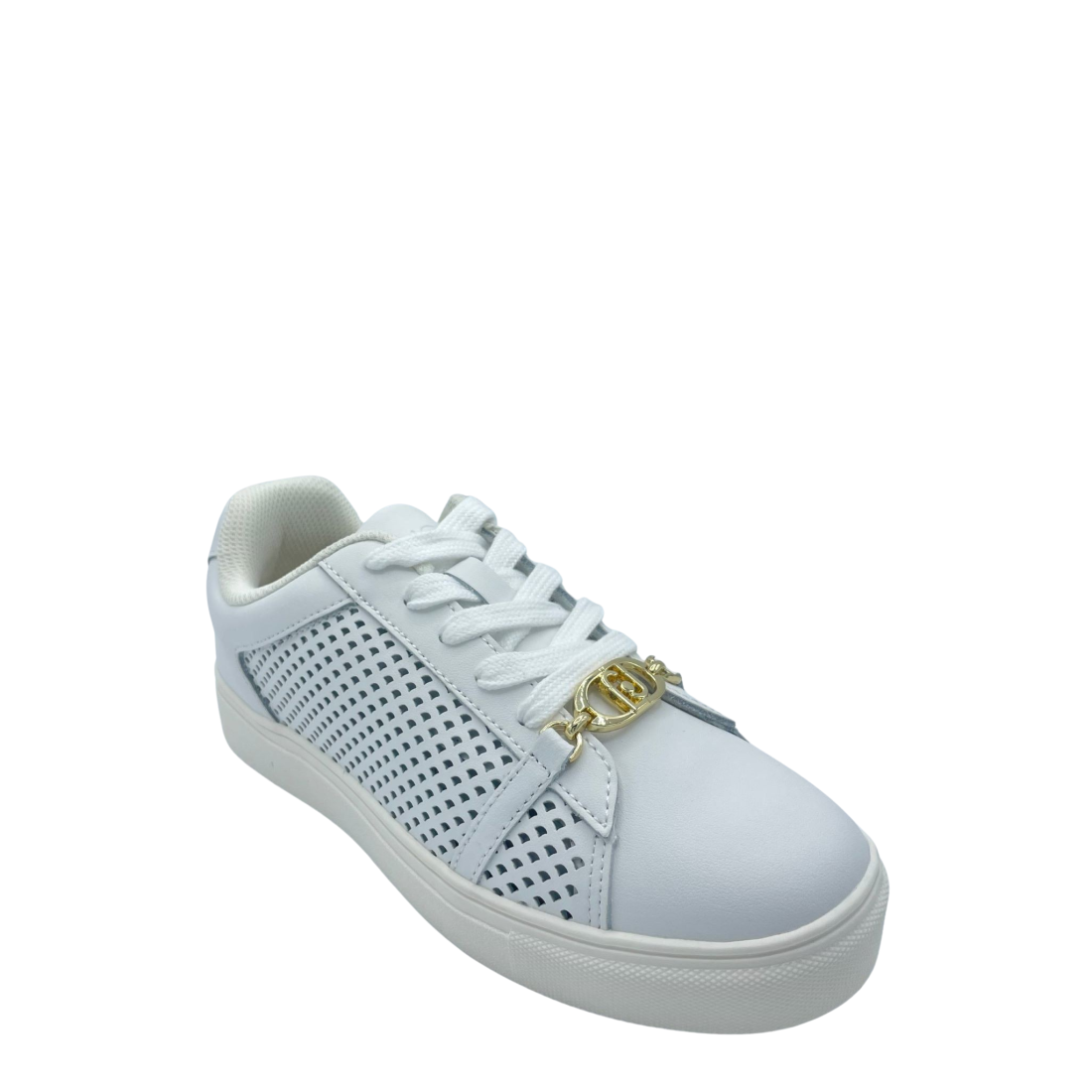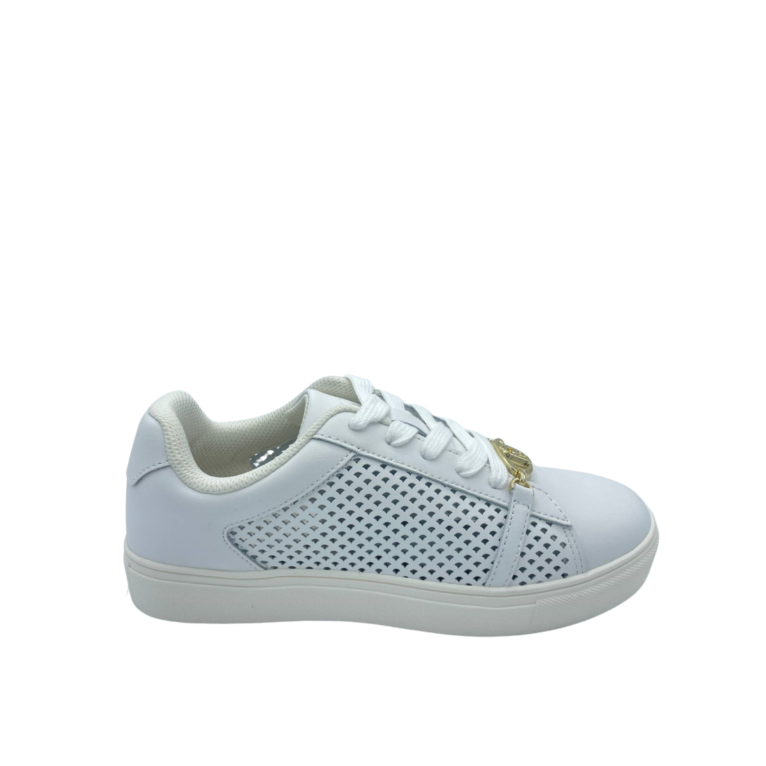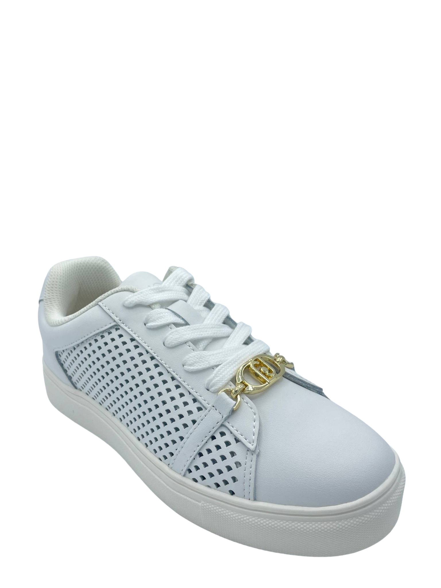 Sneaker con tomaia in vera pelle traforata con logo oro sul davanti. Sottopiede in tessuto e chiusura con lacci. Fondo in gomma.