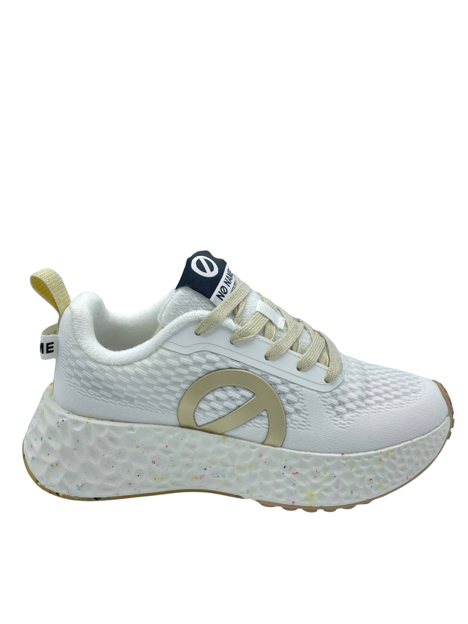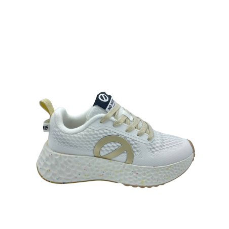 Sneaker con tomaia realizzata in tessuto leggero sfoderato e chiusura lacci. Soletta interna rimovibile in tessuto di cotone. Suola alta 5 cm in gomma Eva.