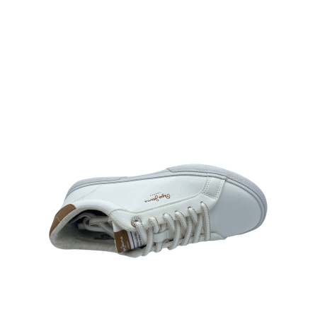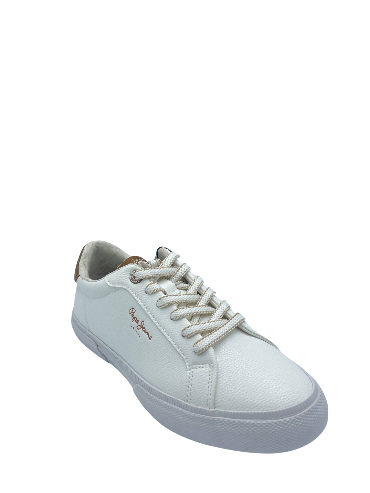 Sneaker in ecopelle con lacci bicolor . Fondo in gomma.