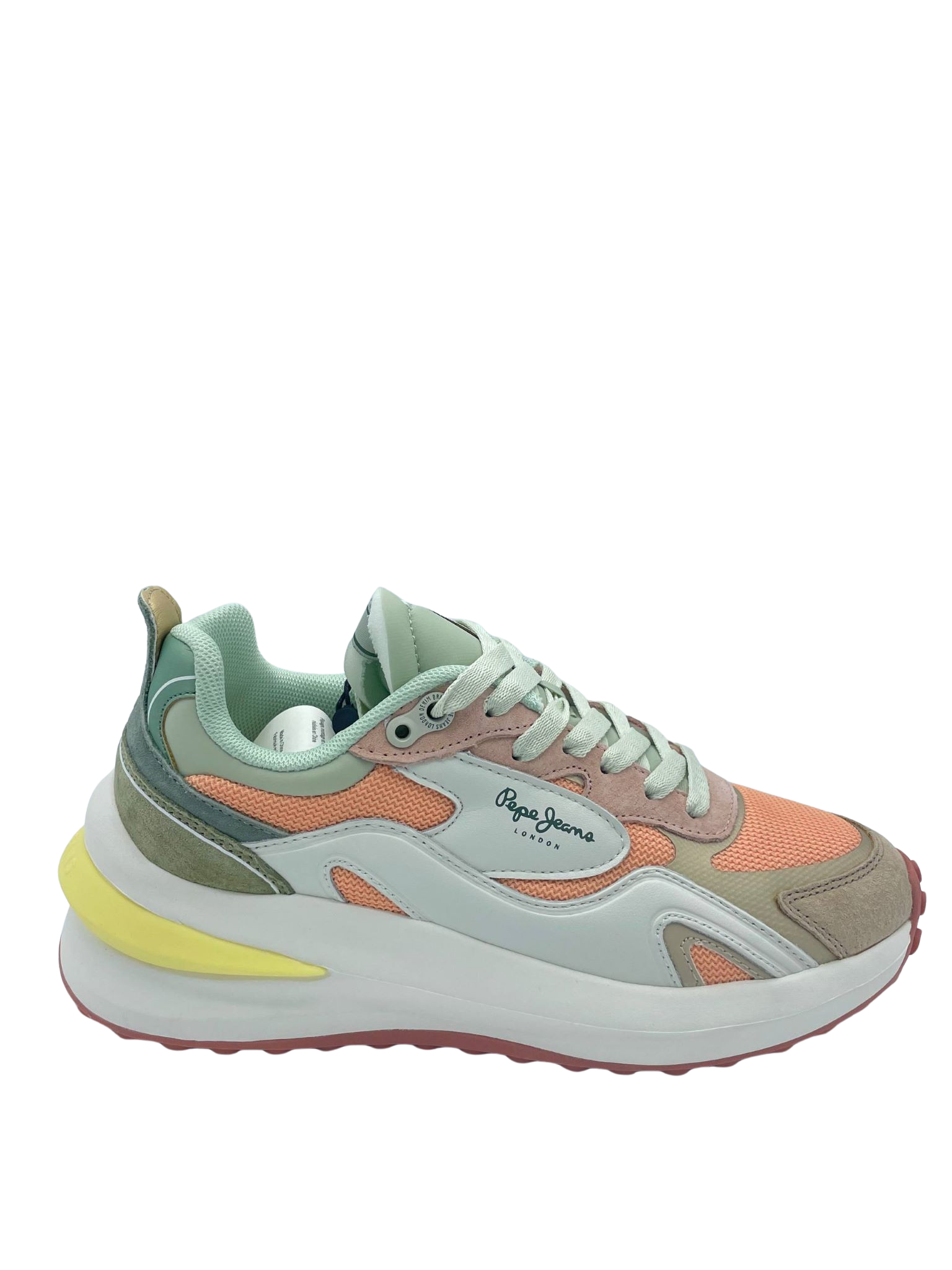 Sneaker con tomaia in vera pelle e mesh e chiusura con lacci. Sottopiede in tessuto. Fondo alto 5 cm. Logo laterale.