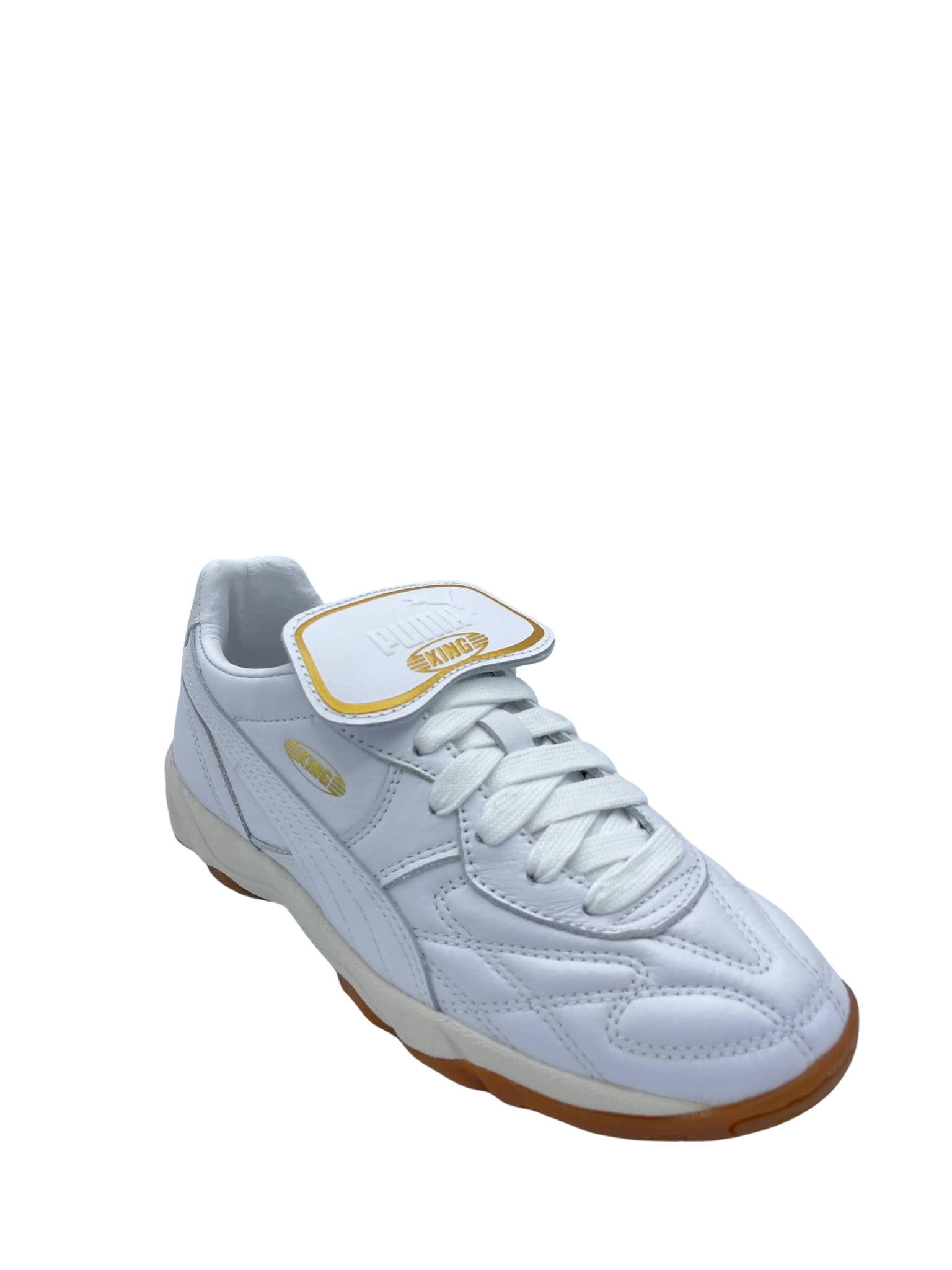 Sneaker con tomaia in vera pelle ispirata alle scarpe da calcio. Chiusura con lacci e sottopiede in tessuto e intersuola in gomma. Fondo in gomma.