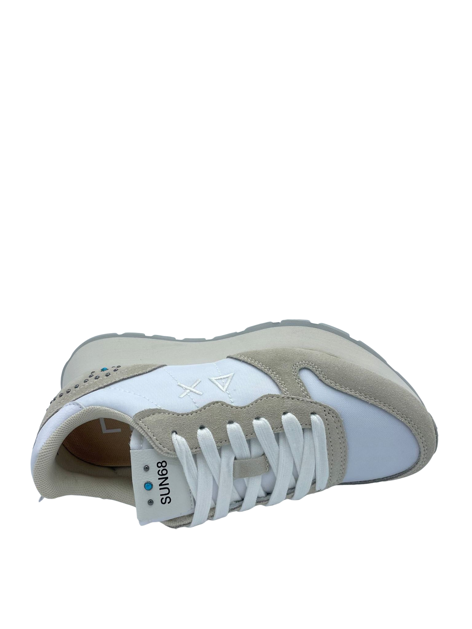 Sneaker con tomaia realizzata in suede e ecopelle. Chiusura con lacci e logo cucito sul lato. Sottopiede in tessuto e dettaglio borchie applicate sul tallone. Soletta removibile. Fondo in gomma.