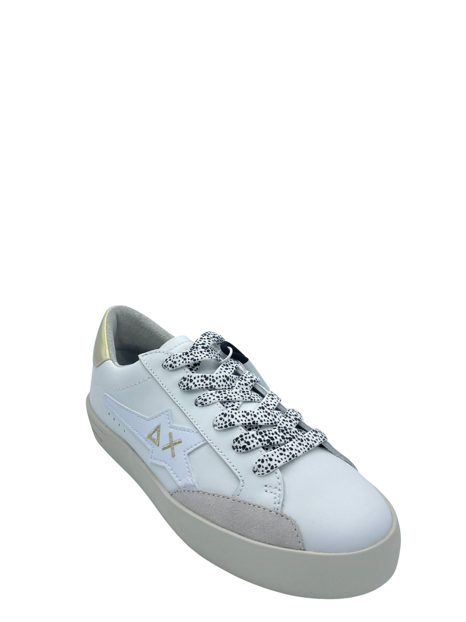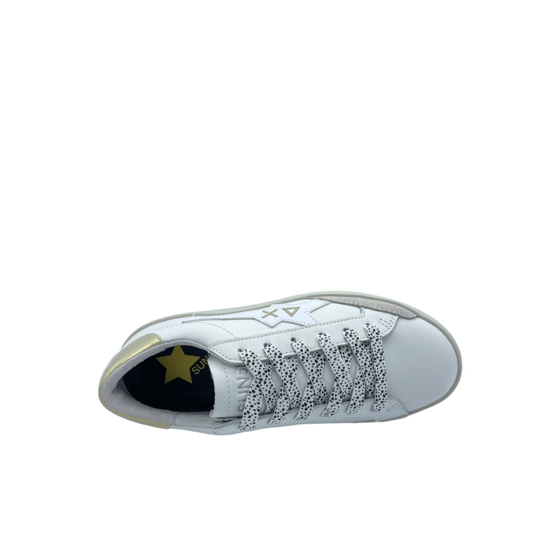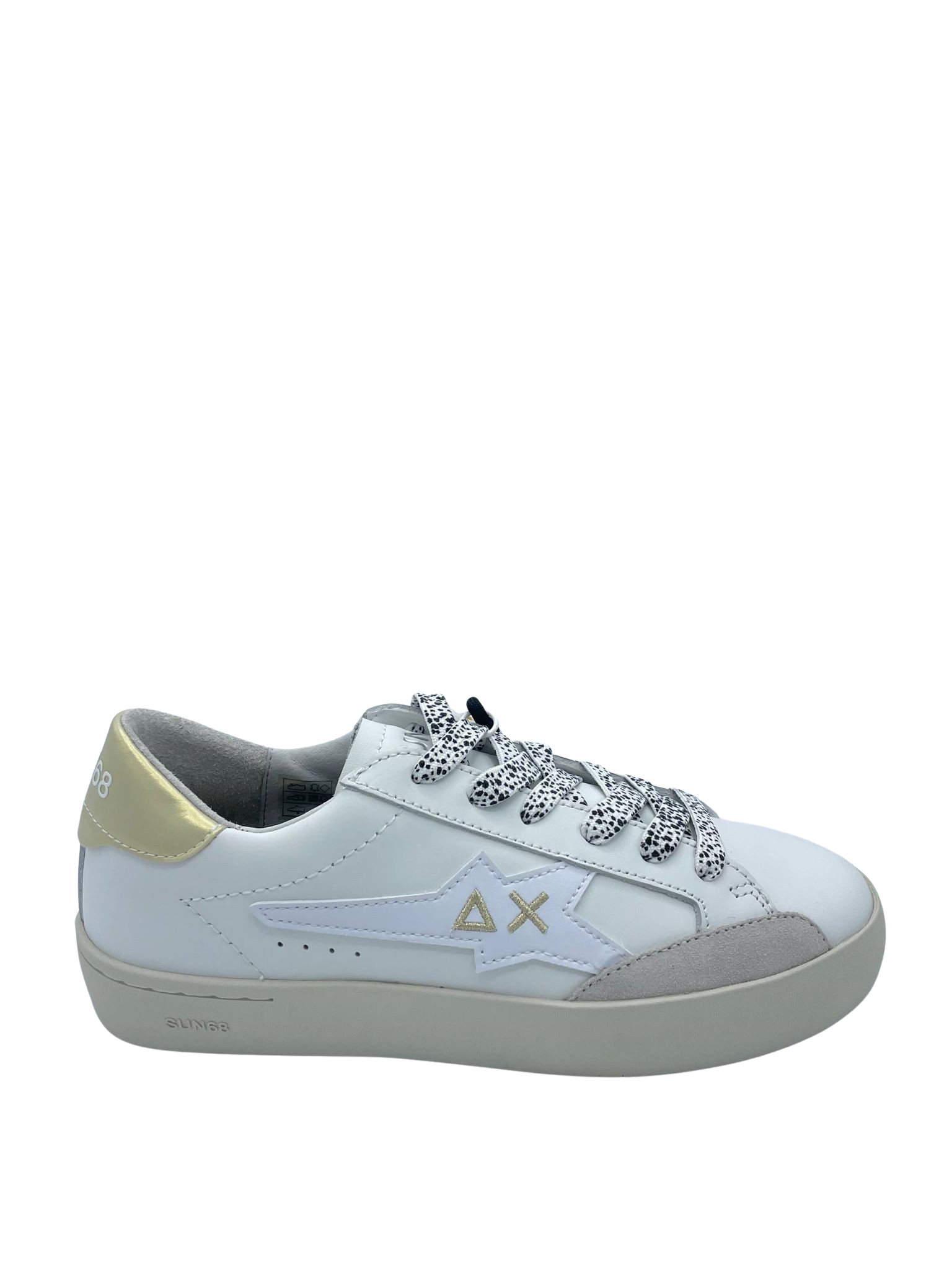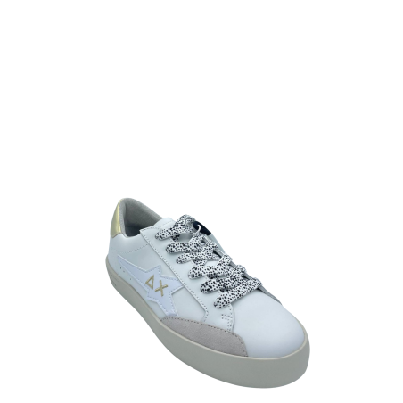 Sneaker con tomaia in vera pelle e lacci a contrasto. Logo laterale e sul tallone. Sottopiede in tessuto e soletta removibile. Fondo in gomma.