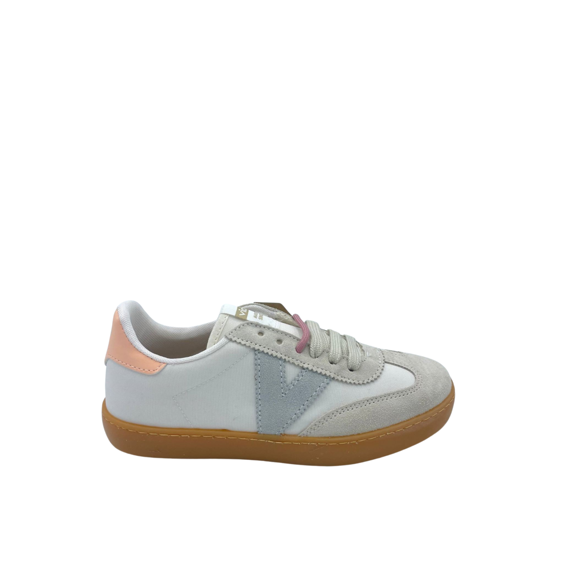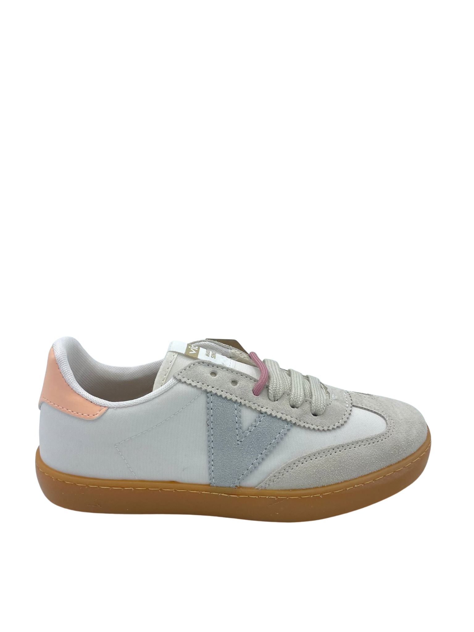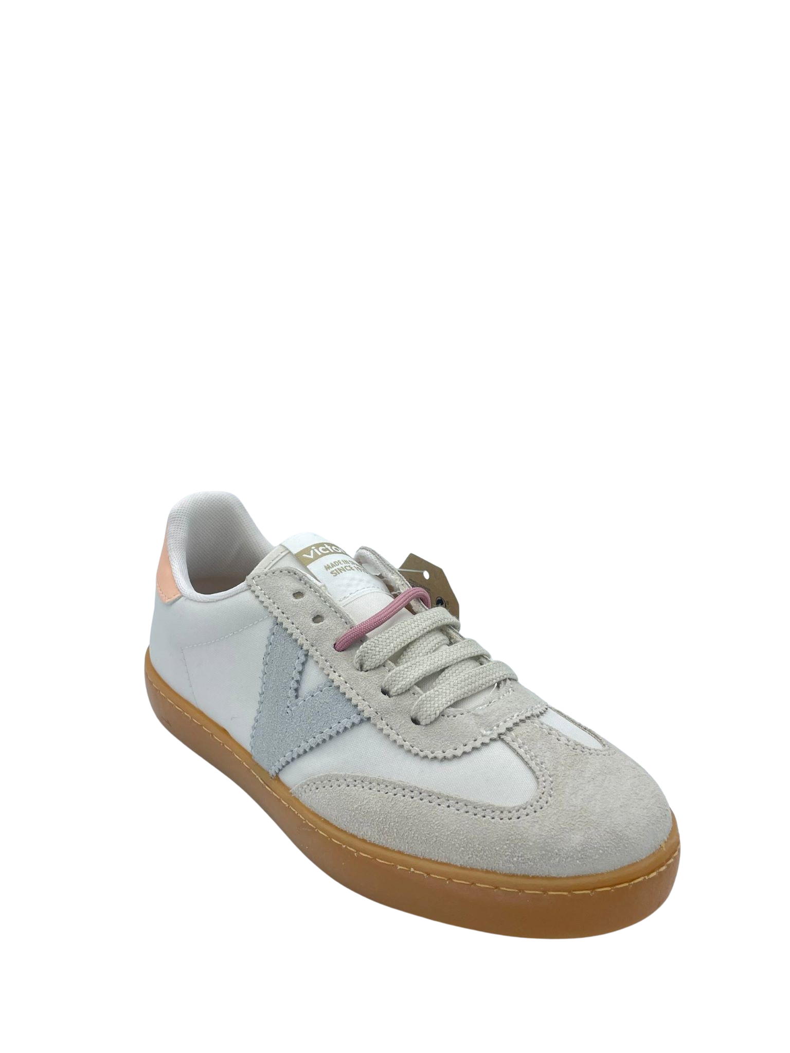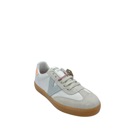 Sneaker con tomaia in vera pelle suede e nylon. Sottopiede in tessuto. Doppio laccio e logo in evidenza laterale. Fondo in gomma color miele.