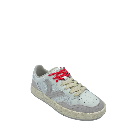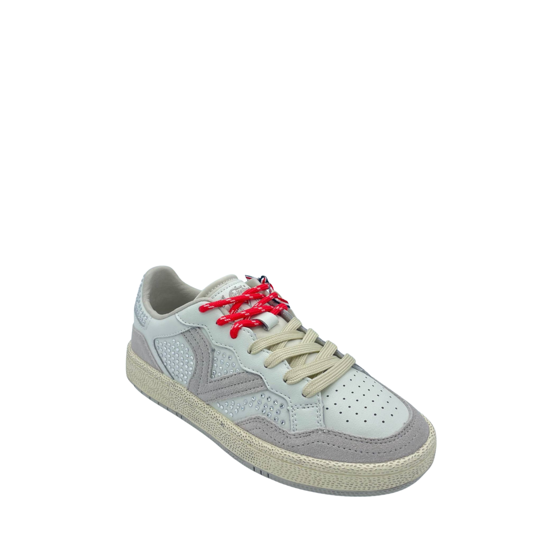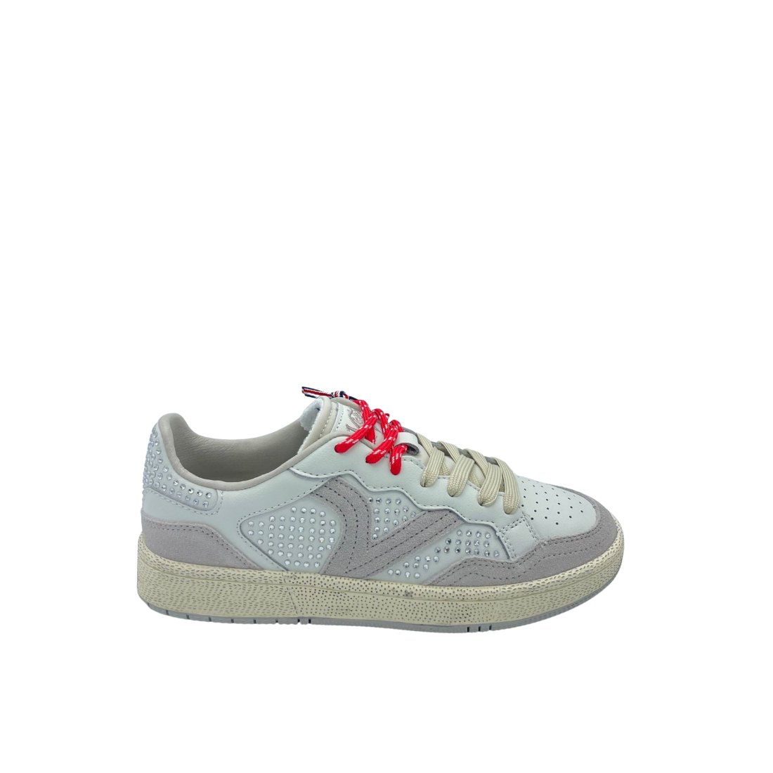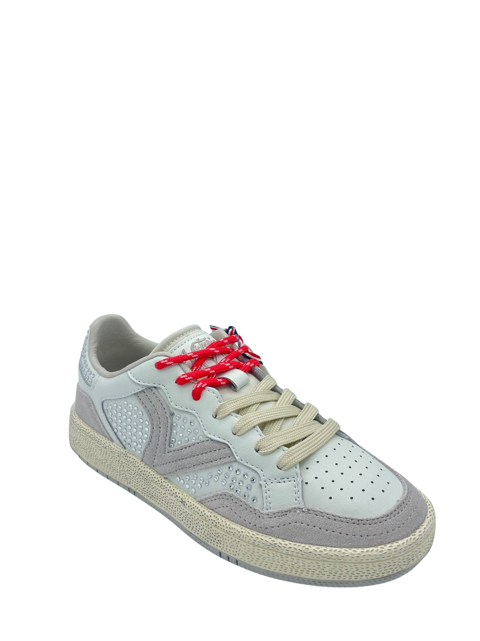 Sneaker con tomaia in vera pelle e suede con dettaglio di strass applicati. Sottopiede in tessuto, doppi lacci e logo laterale. Fondo in gomma.