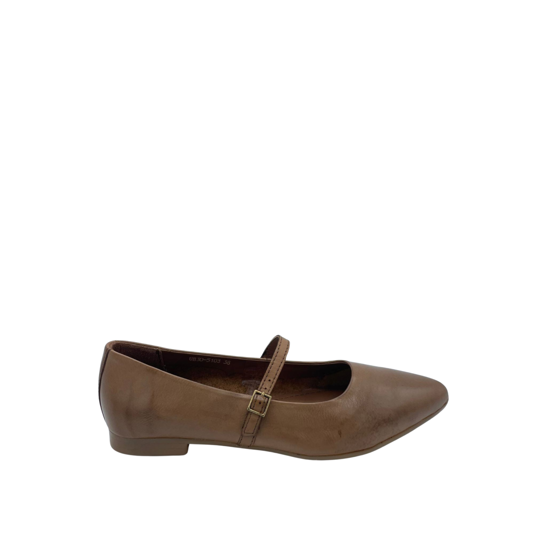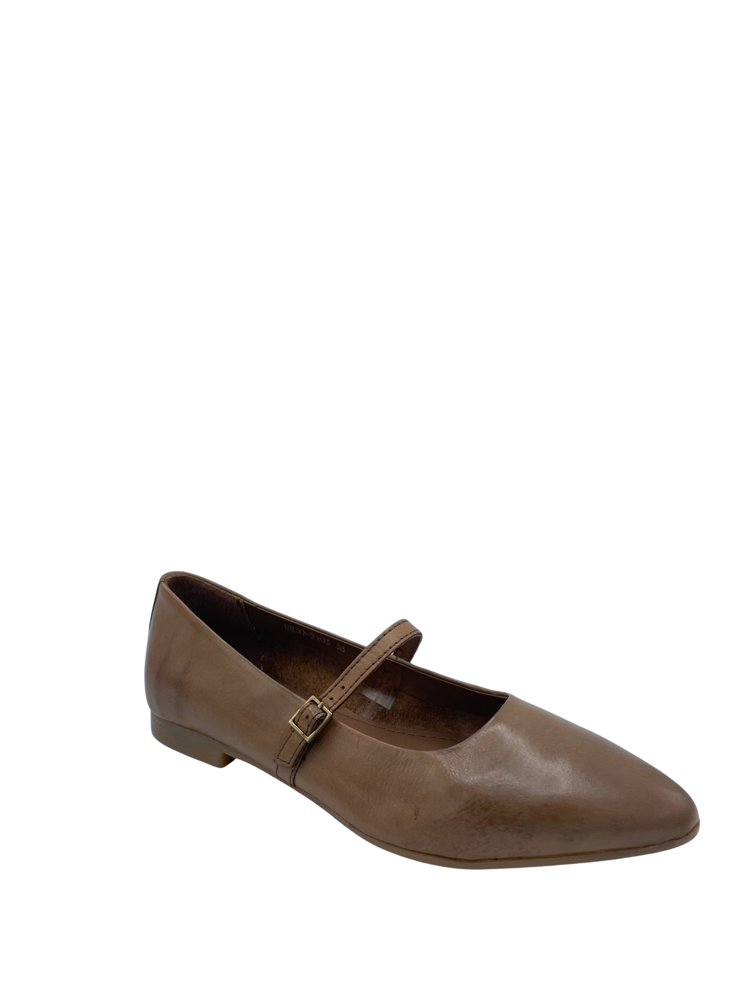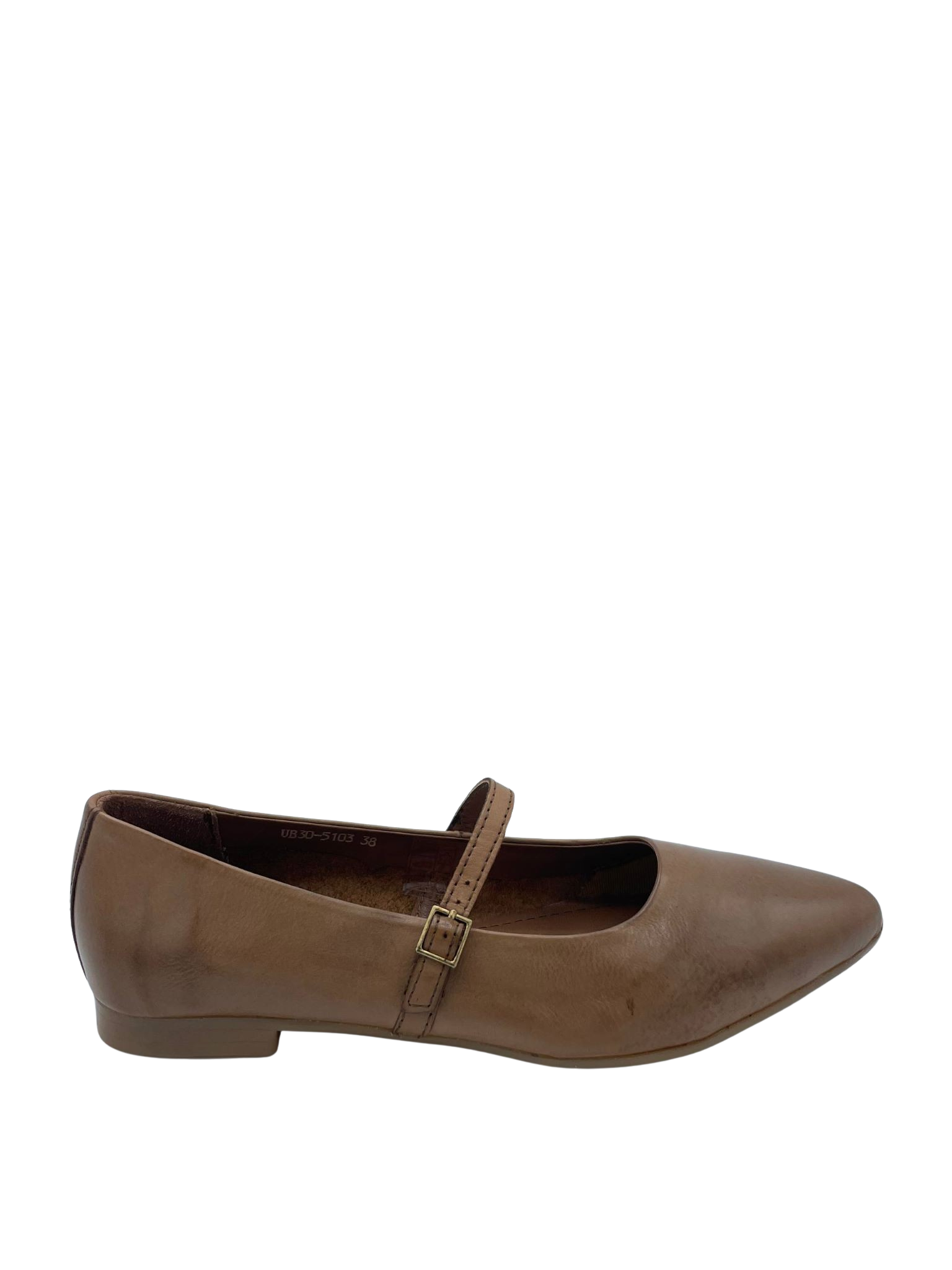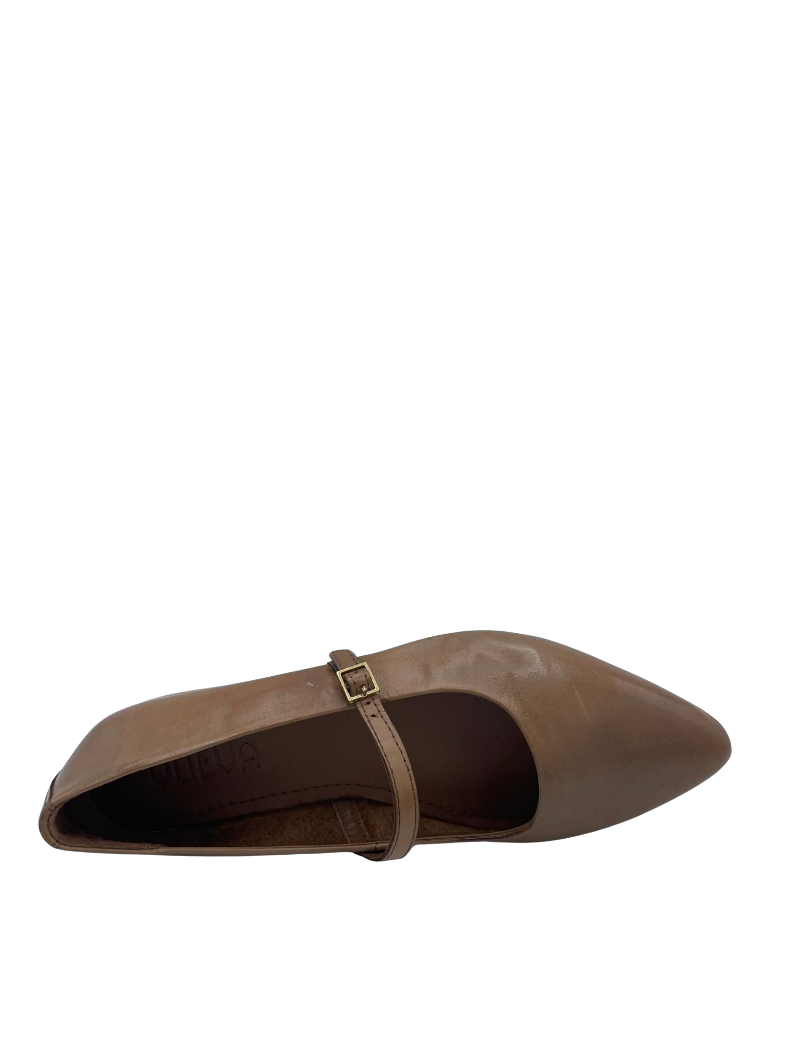Ballerina con tomaia e sottopiede in vera pelle e con cinturino regolabile sul collo del piede. Fondo in gomma sottile.