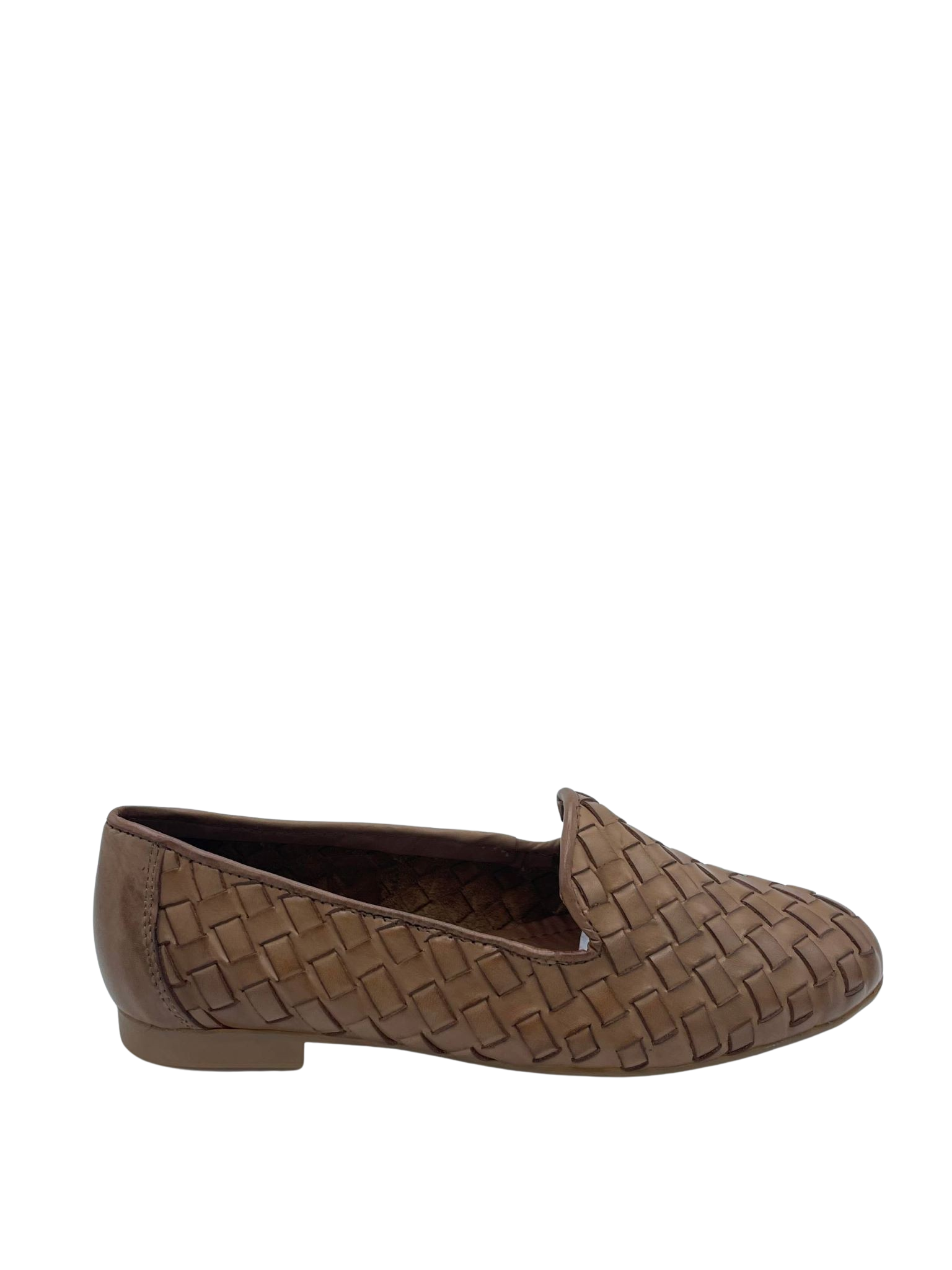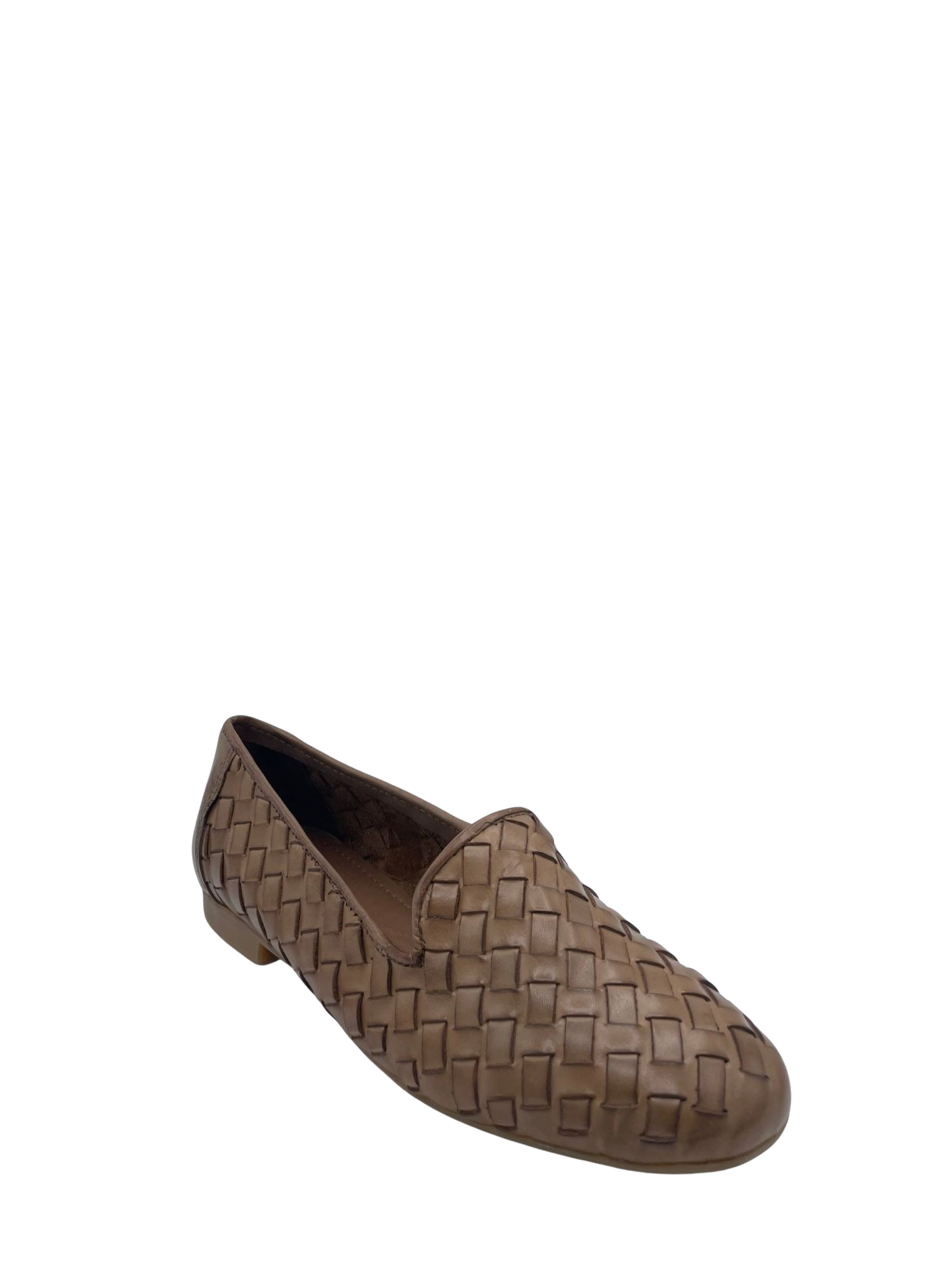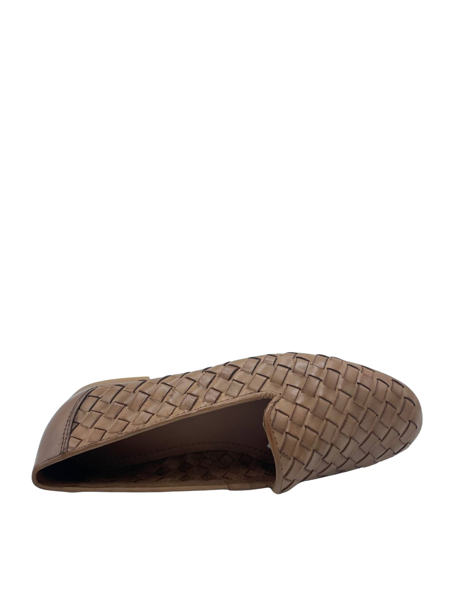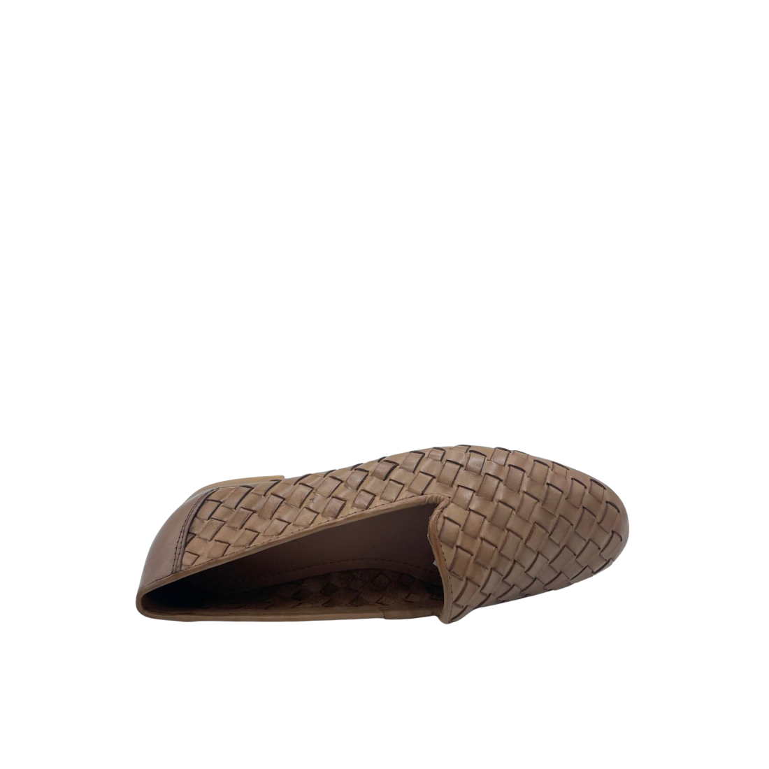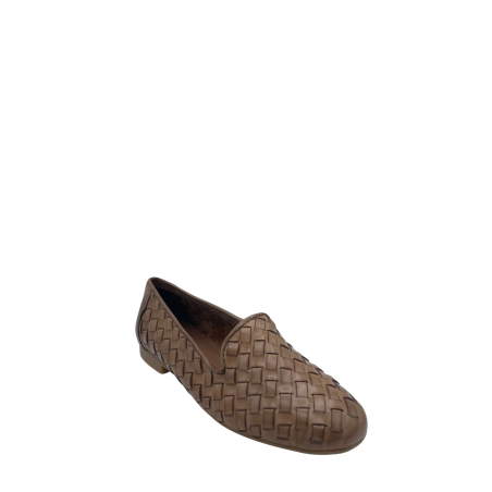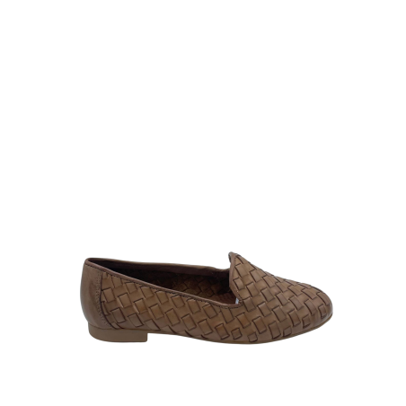 Mocassino con tomaia e sottopiede in vera pelle intrecciata con fondo in gomma sottile.